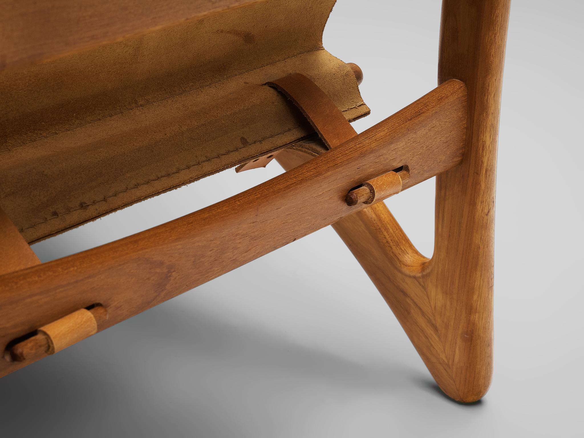 Kircodan, lounge chair, teak, leather, Denmark, 1960s