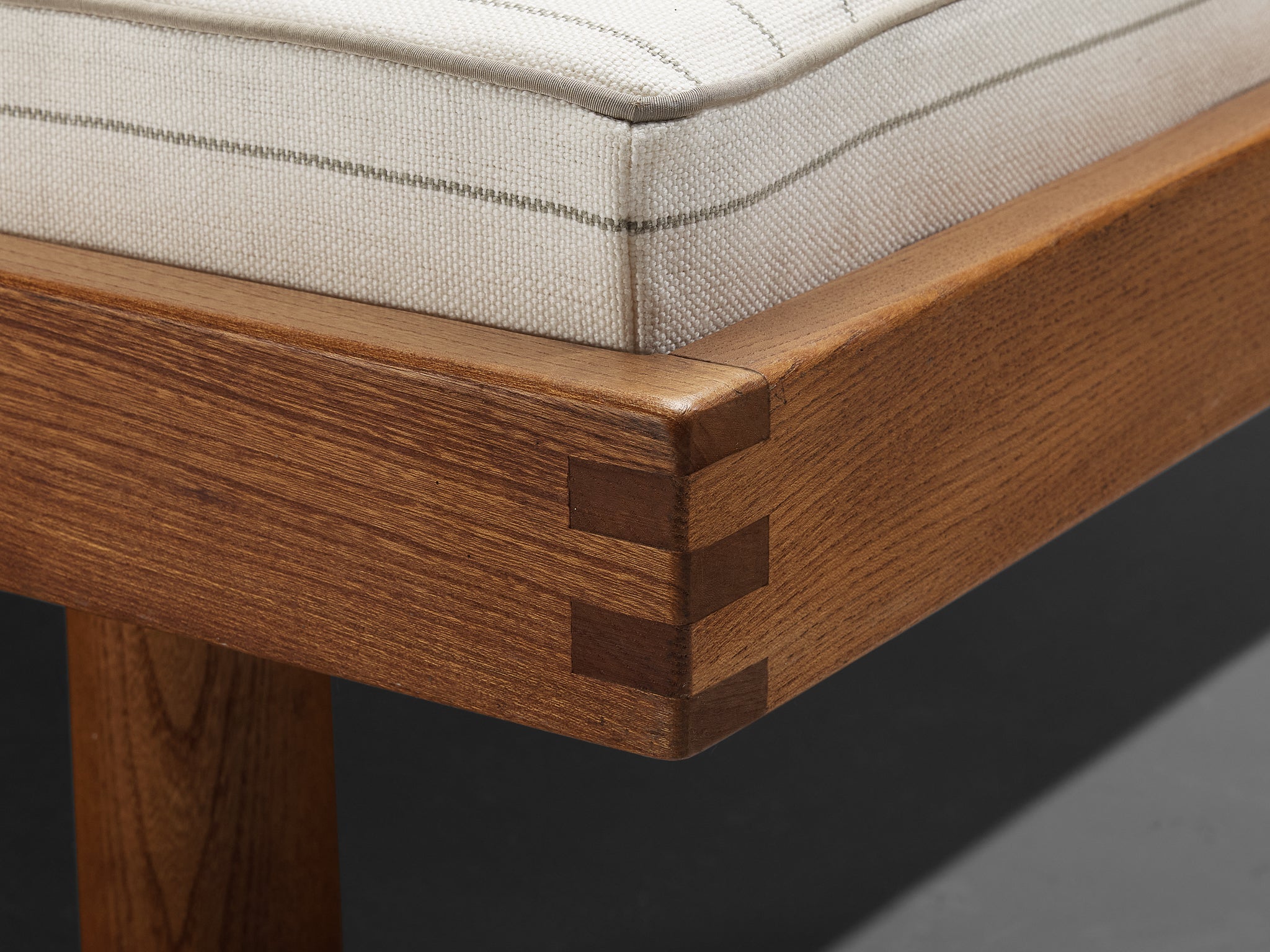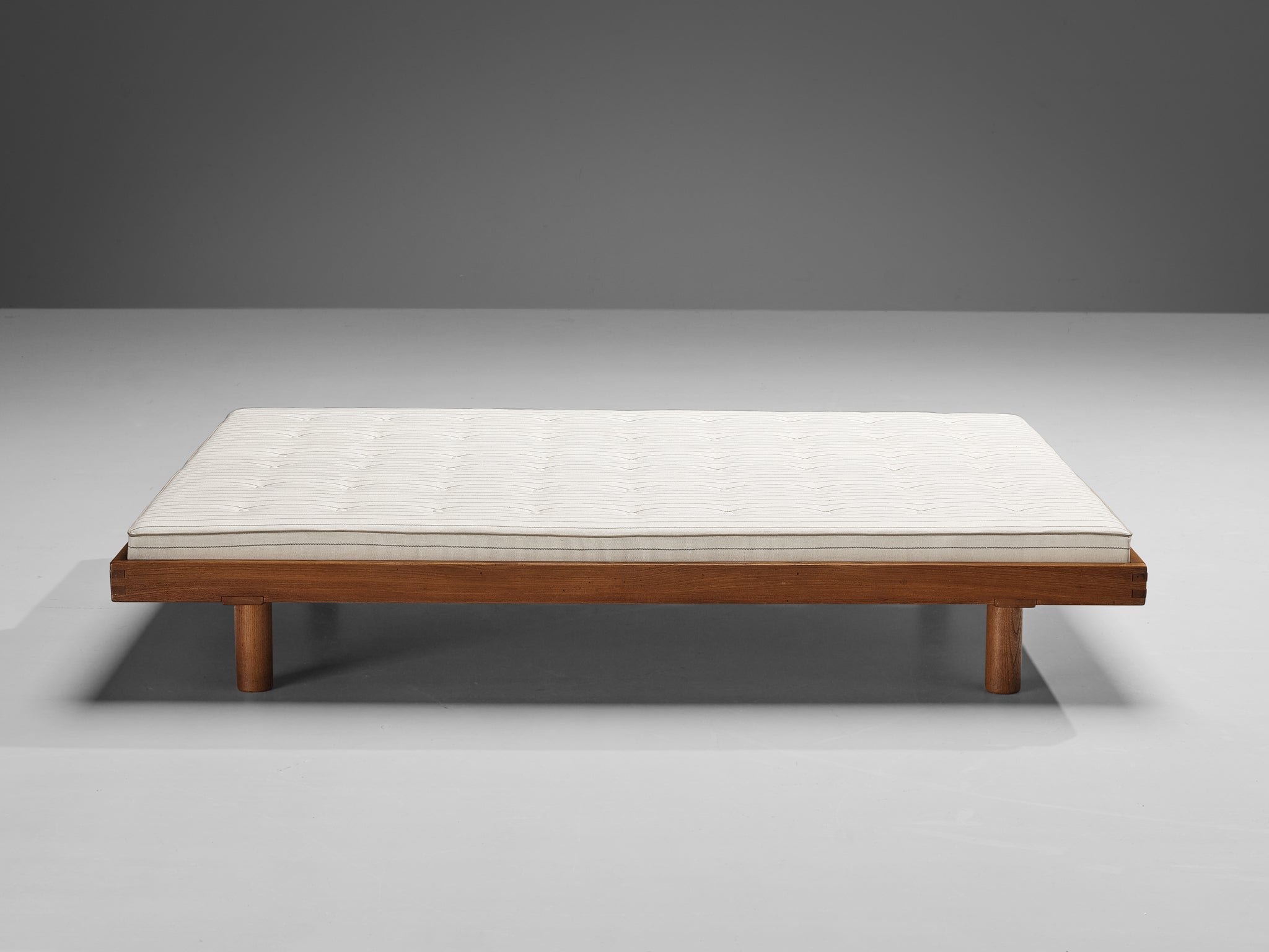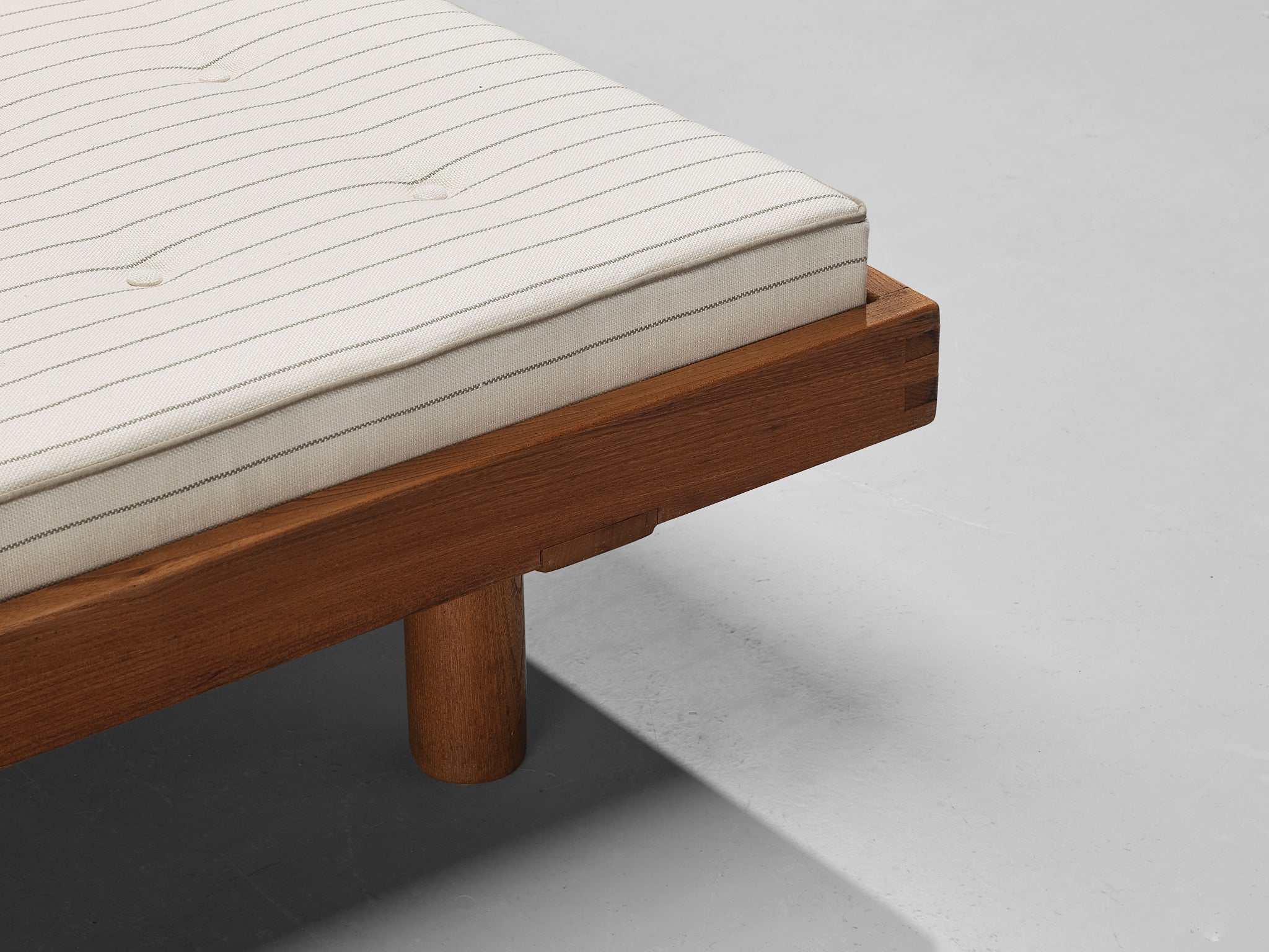 This daybed is an early edition designed by the French designer and master woodworker Pierre Chapo (1927-1987), known for his hallmark use of solid elmwood and a commitment to pure and clean design and construction principles. The L01 bed by Pierre Chapo is characterized for its taut, sober design with simple lines and the box joints at the corners of the frame. Chapo designed this daybed in 1959 for the writer Samuel Becket and named it 'Godot', in reference to the play 'Waiting for Godot'.