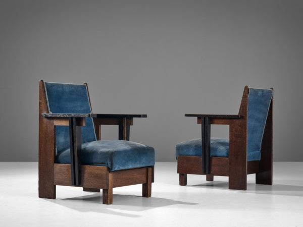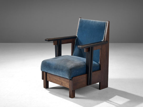 Hague School Art Deco Armchair in Solid Oak and Blue Upholstery Seating MorentzHague School Art Deco Armchair in Solid Oak and Blue Upholstery Seating Morentz