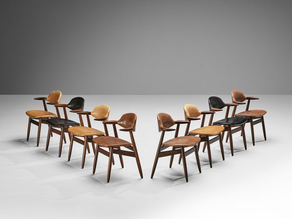 Carl Malmsten Set of Twelve Armchairs in Teak and Green-Blue Upholstery Seating MorentzCarl Malmsten Set of Twelve Armchairs in Teak and Green-Blue Upholstery Seating Morentz