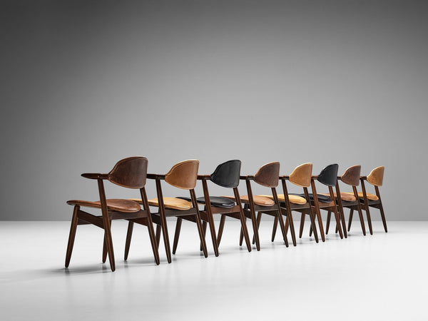 Edward Wormley Set of Eight Dining Chairs in Red Brown Leather Seating MorentzEdward Wormley Set of Eight Dining Chairs in Red Brown Leather Seating Morentz