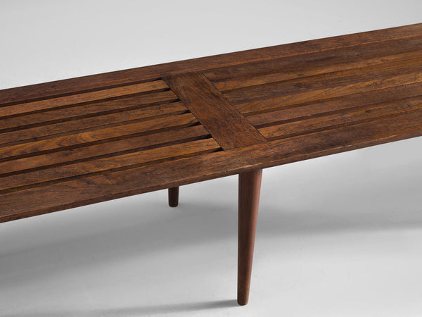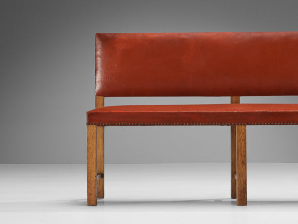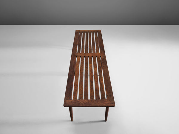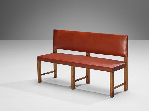 Scandinavian Modern Bench in Chestnut Upholstery and Teak