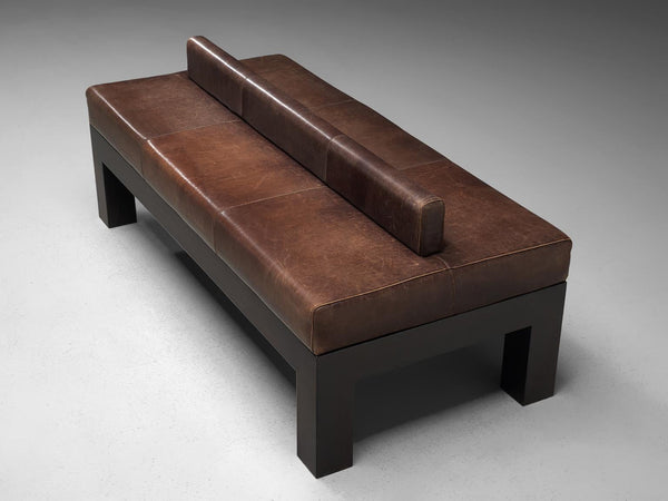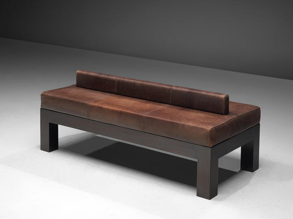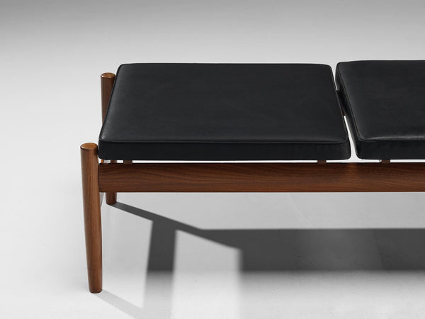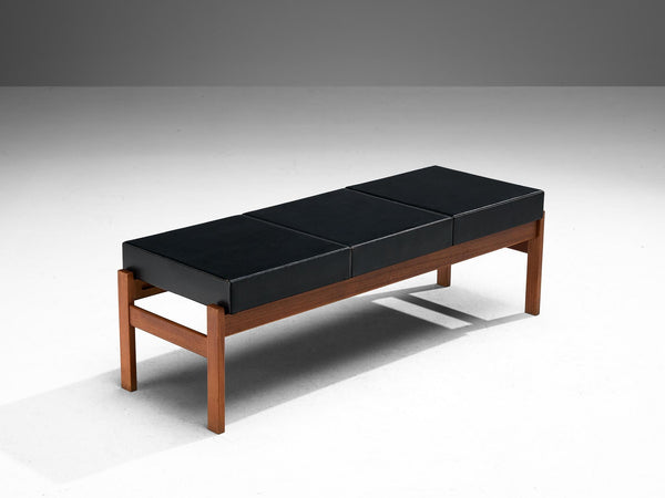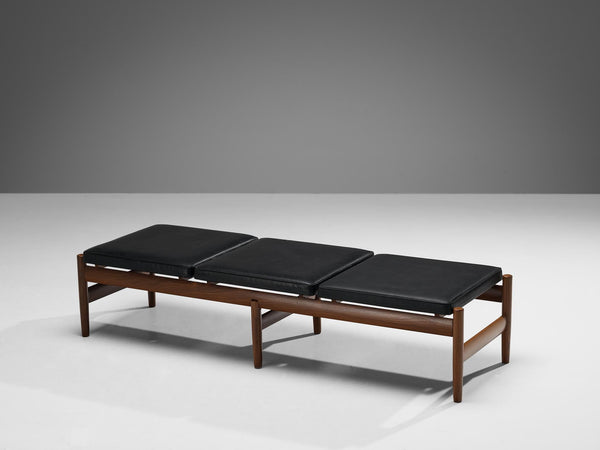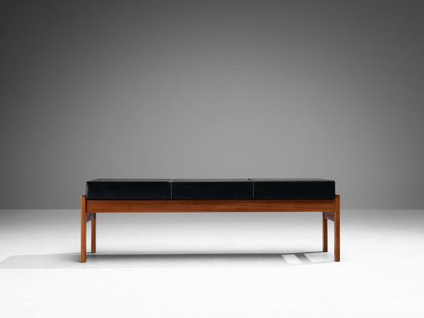Mid-Century Modern Daybed or Bench in Teak and Black Upholstery