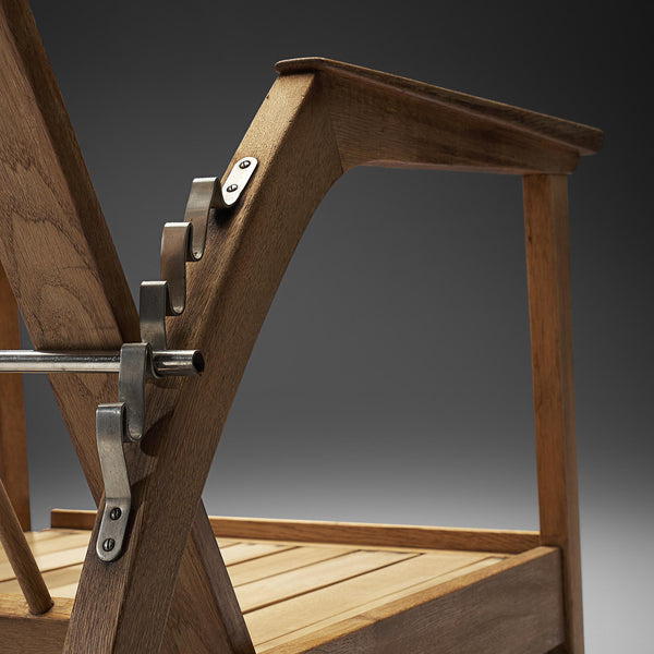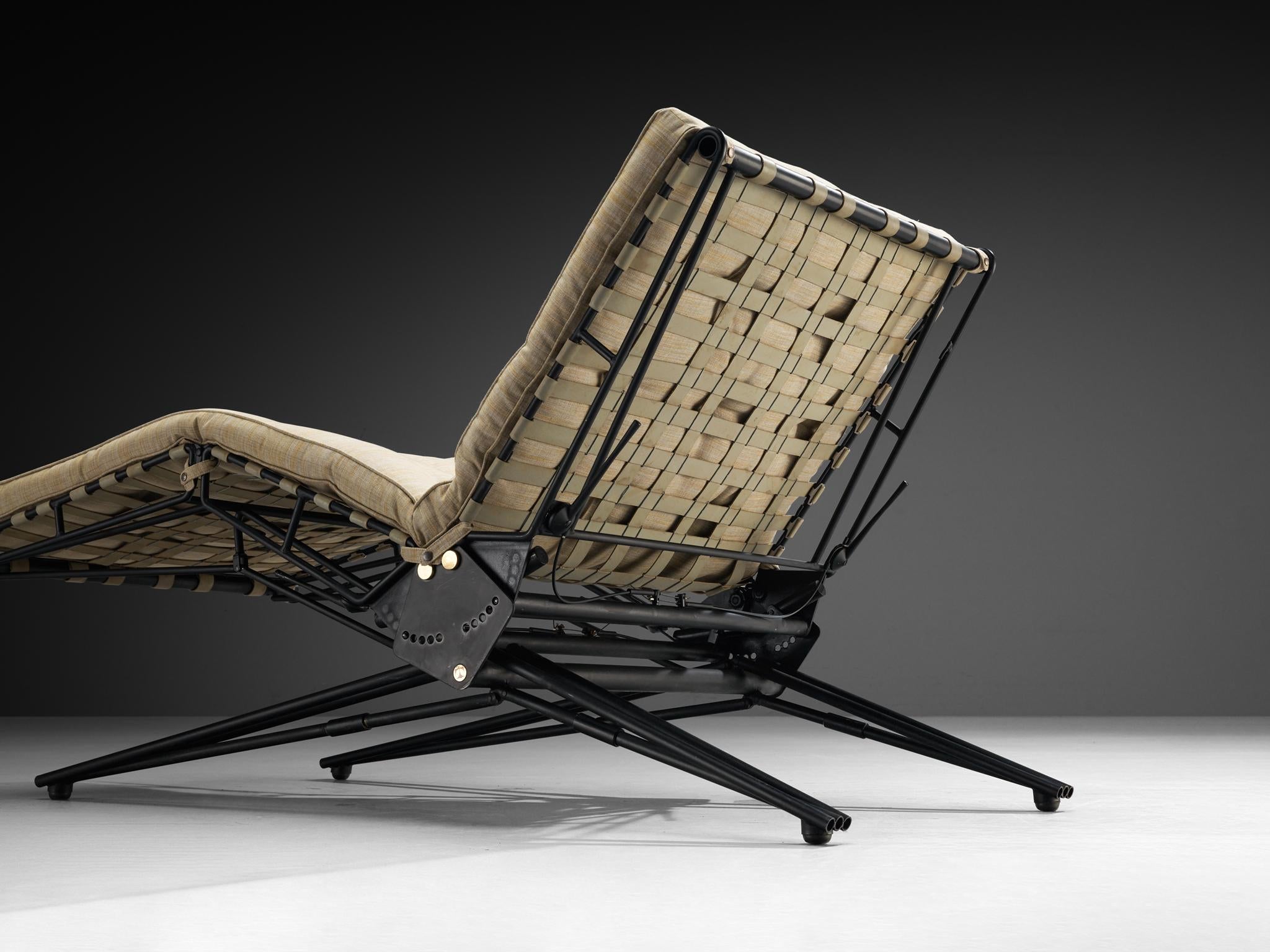 French Adjustable Chaise Longue in Black Iron and Wood