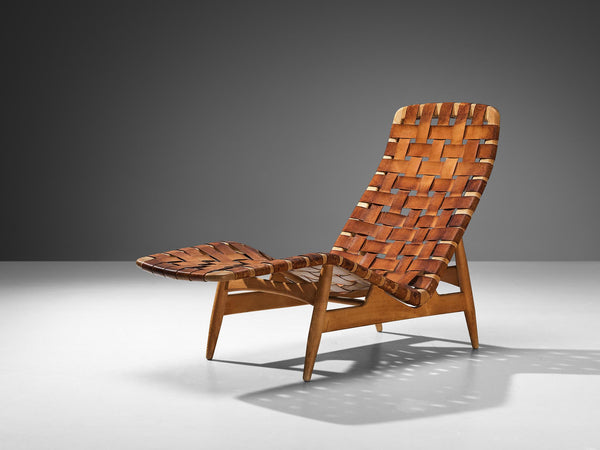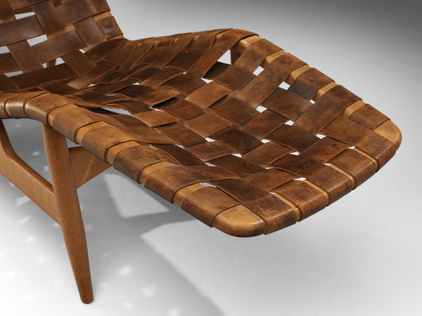 Arne Vodder for Bovirke Chaise Longue in Patinated Cognac Leather