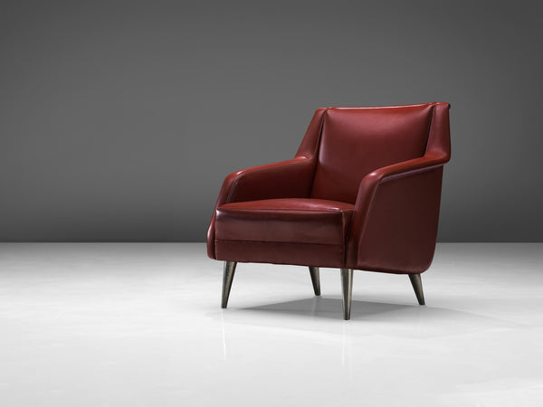 Mid-Century Modern Italian 1950s Side Chair in Red Upholstery and Brass