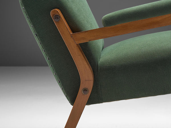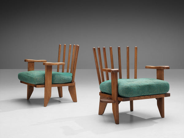 Guillerme & Chambron Lounge Set with Side Table Solid Oak and Green Fabric