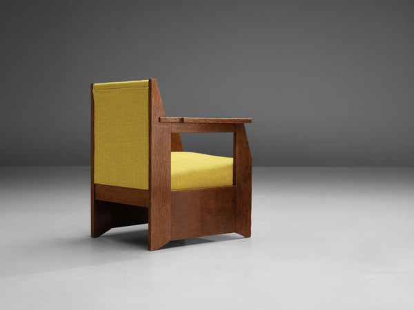 Brutalist Spanish Lounge Chair in Solid Oak and Warm Ochre Suede