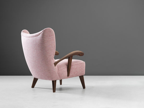 Danish Mid-Century Wingback Easy Chair in Red Upholstery and Walnut