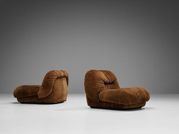 Pair of 1930s Sculptural Art Deco Club Chairs in Brown Upholstery