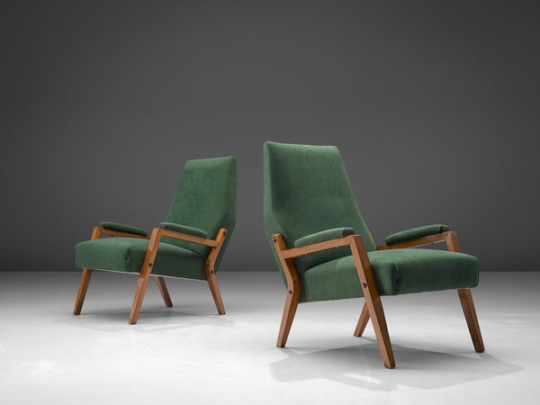 Cor Alons Pair of Art Deco Modernist Lounge Chairs in Oak and Beige Velvet