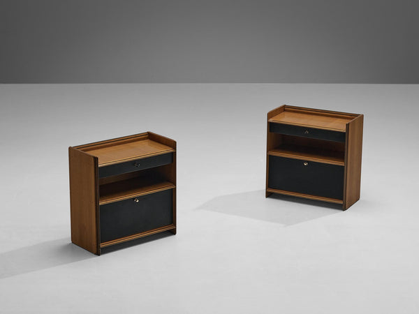 Mid-Century Modern Italian Pair of Night Stands in Walnut and Brass