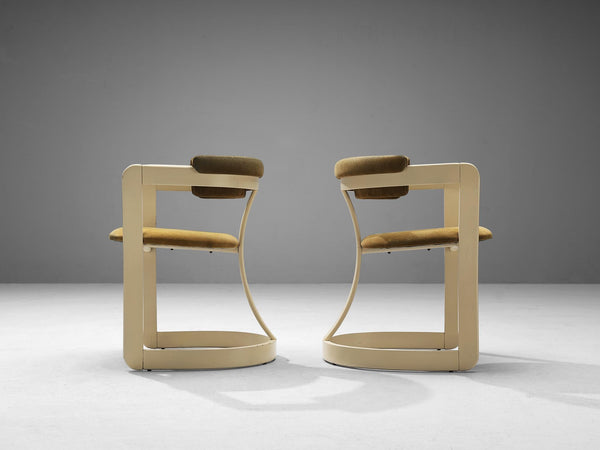 The Hague School Dutch Art Deco Lounge Chair in Beige Velvet and Teak