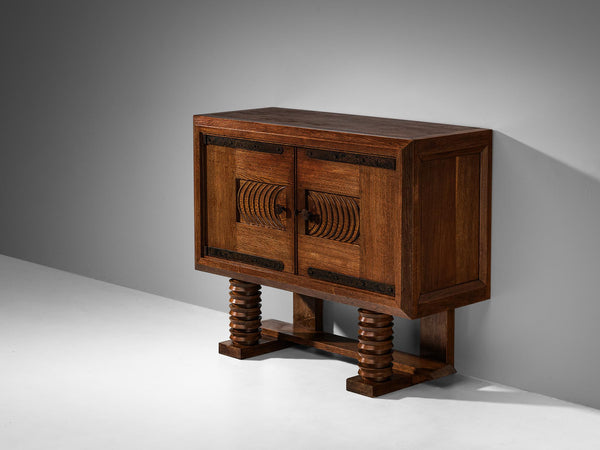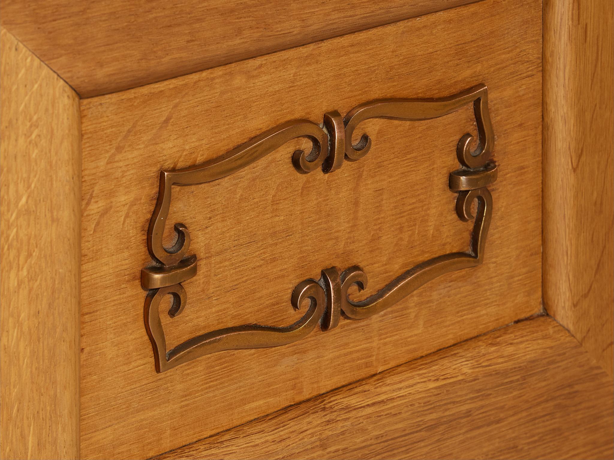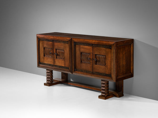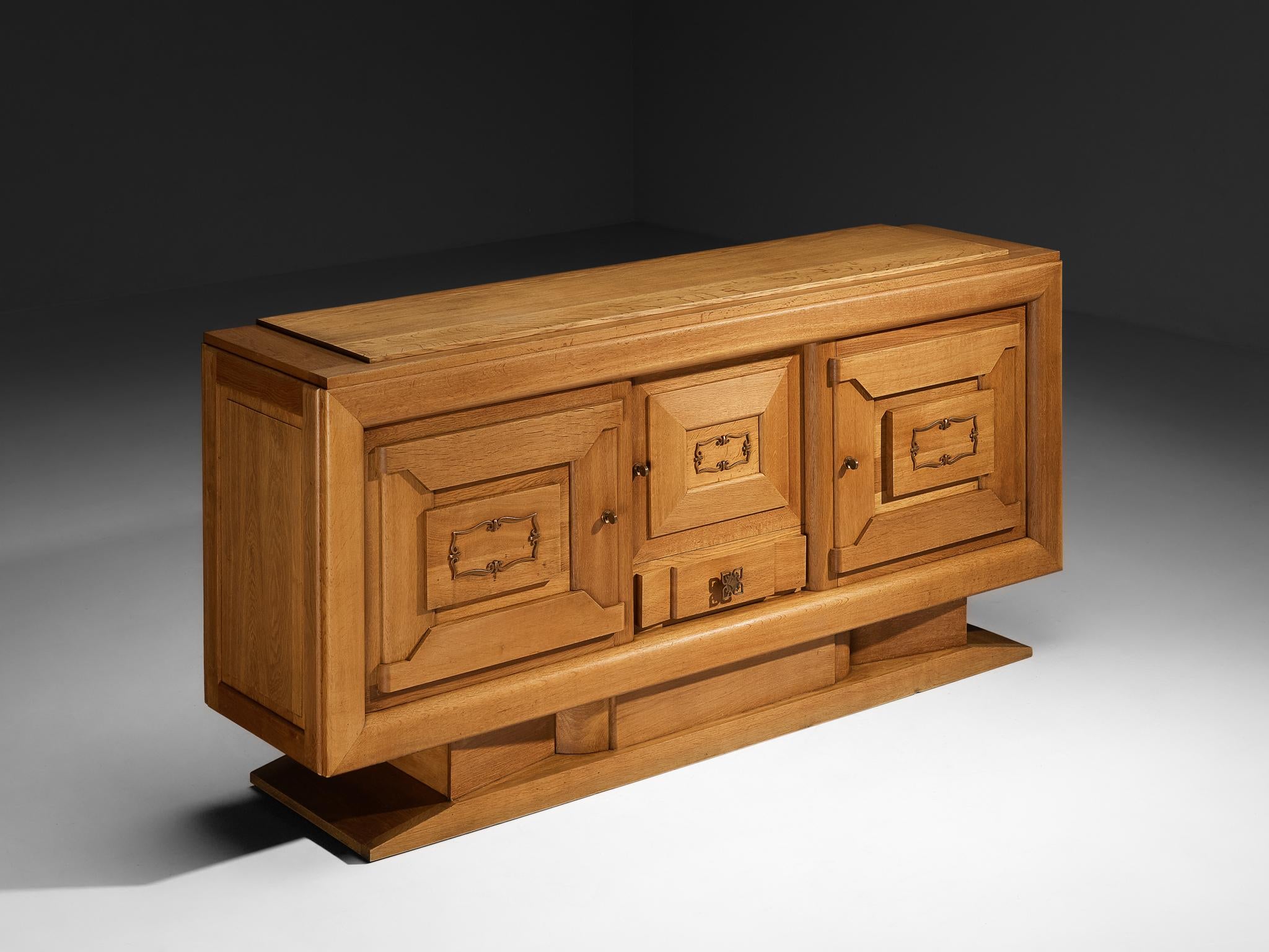 Guillerme et Chambron Sculptural Carved Sideboard in Solid Oak and Brass