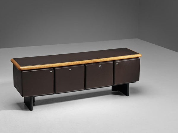 Italian Sideboard with Various Compartments in Wengé and Ash