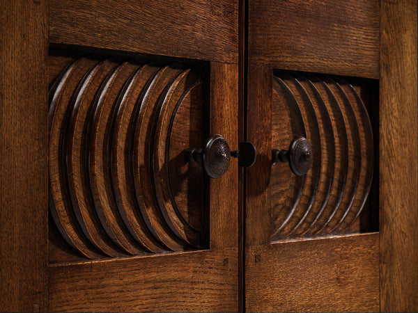 Guillerme & Chambron Carved Sideboard in Solid Oak and Ceramic
