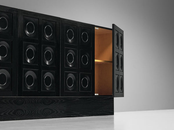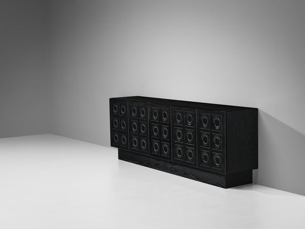 Large Belgian Sideboards in Black Lacquered Oak with Graphical Doors