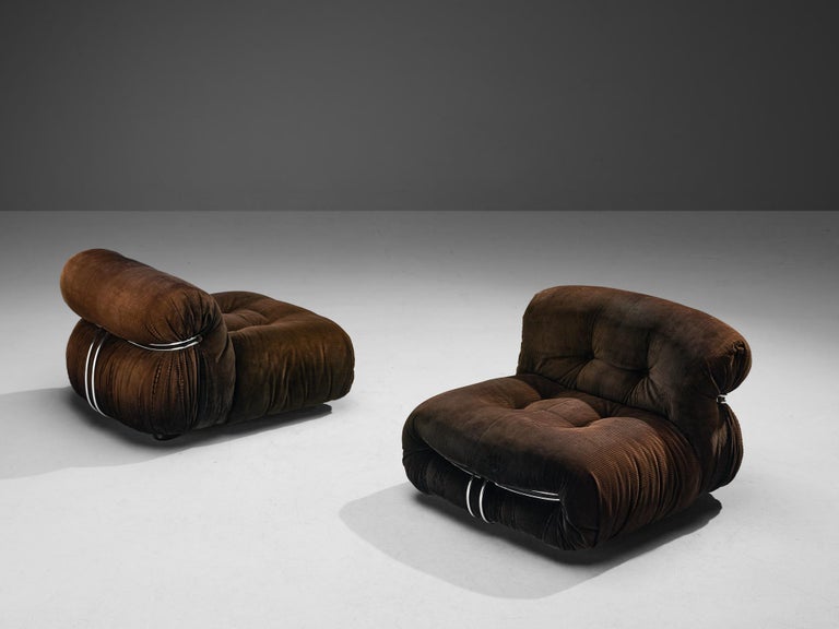 Alberto Rosselli for Saporiti 'Maxijumbo' Lounge Chairs in Brown Suede
