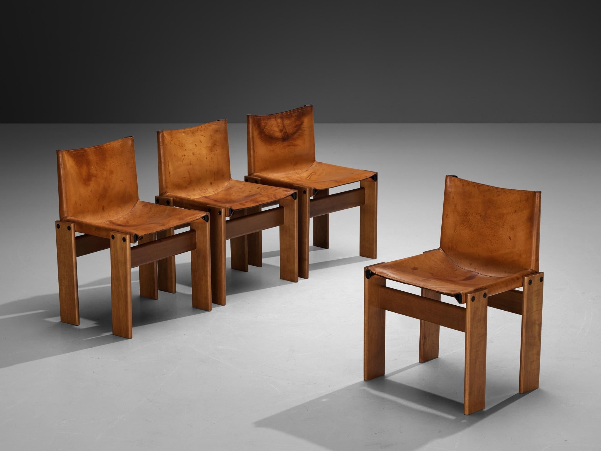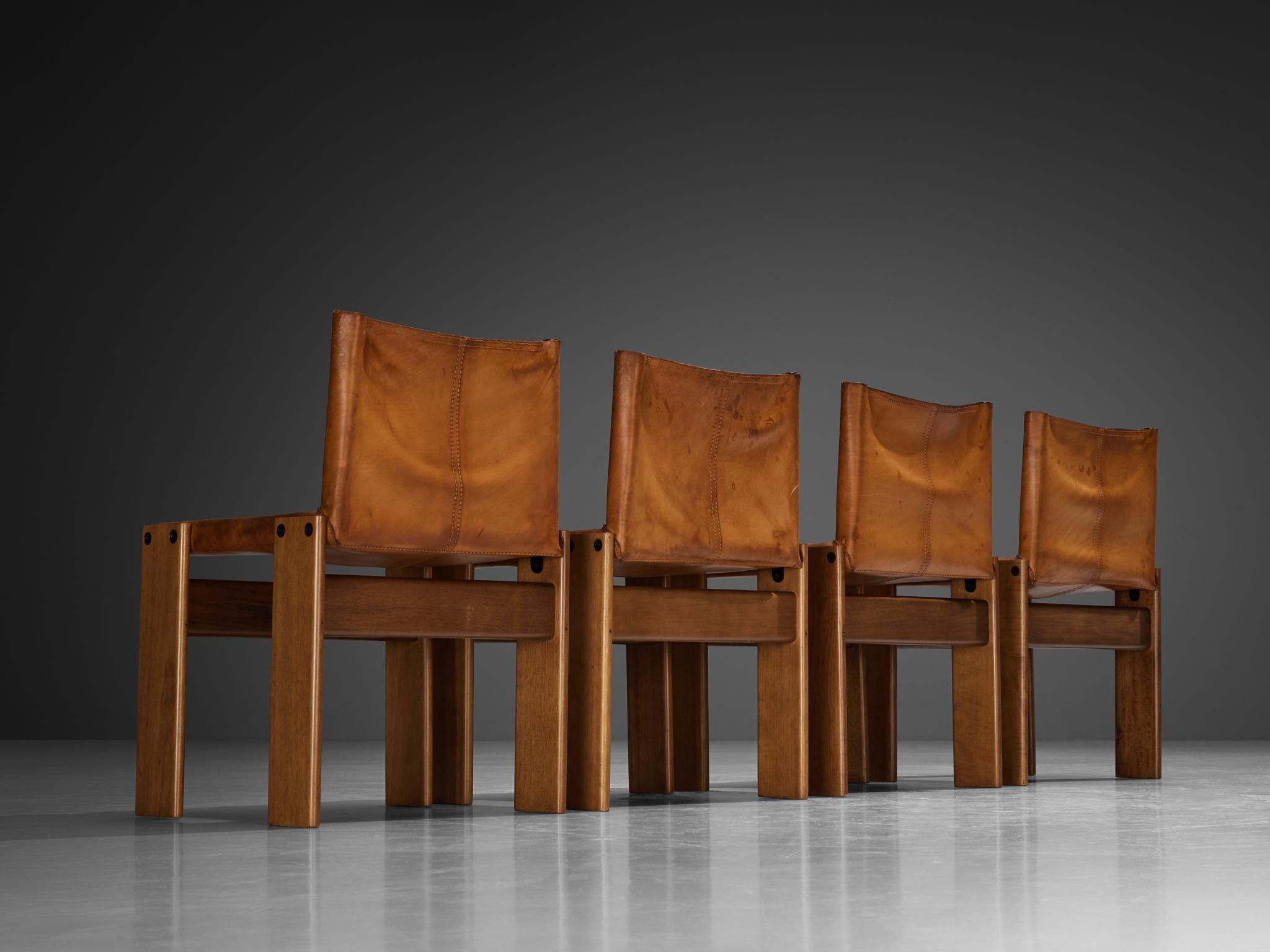 Afra & Tobia Scarpa for Cassina '121' Dining Chairs in Cognac Leather and Walnut