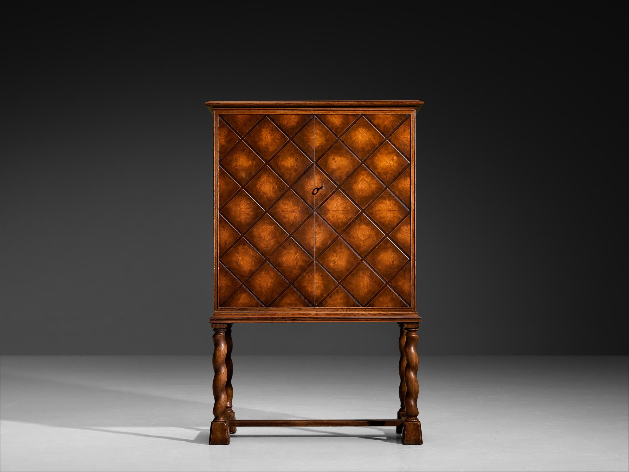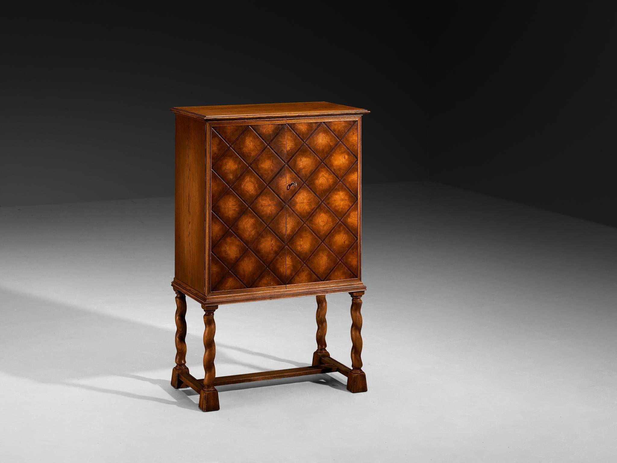 1940s Cabinet in Solid Oak with Latticework