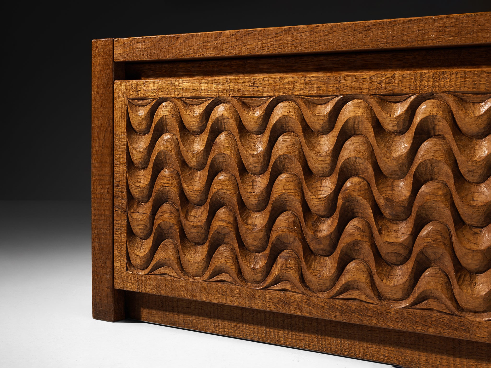 French Art Deco Sideboard in Oak with Geometric Front