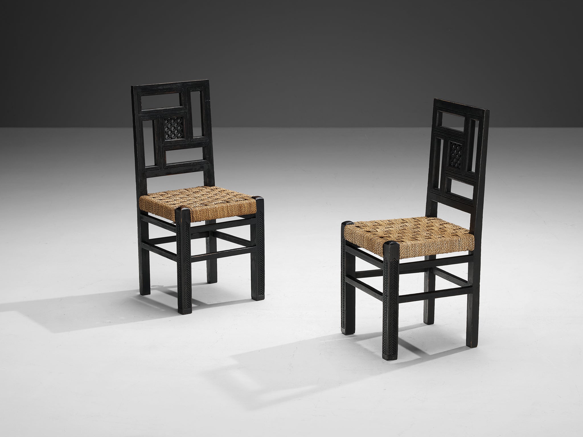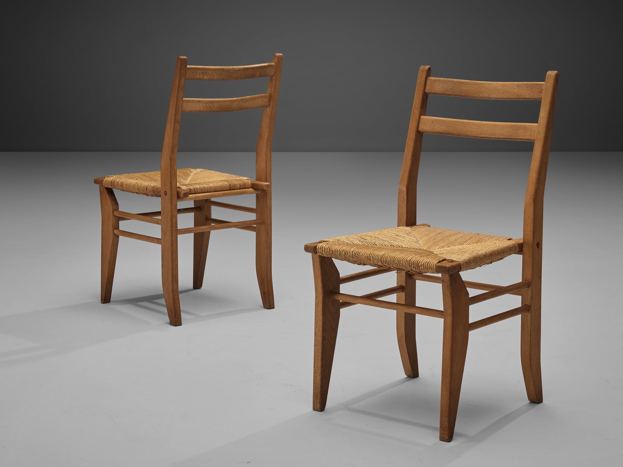 Pierre Chapo Pair of 'S24' Dining Chairs in Cognac Leather and Elm