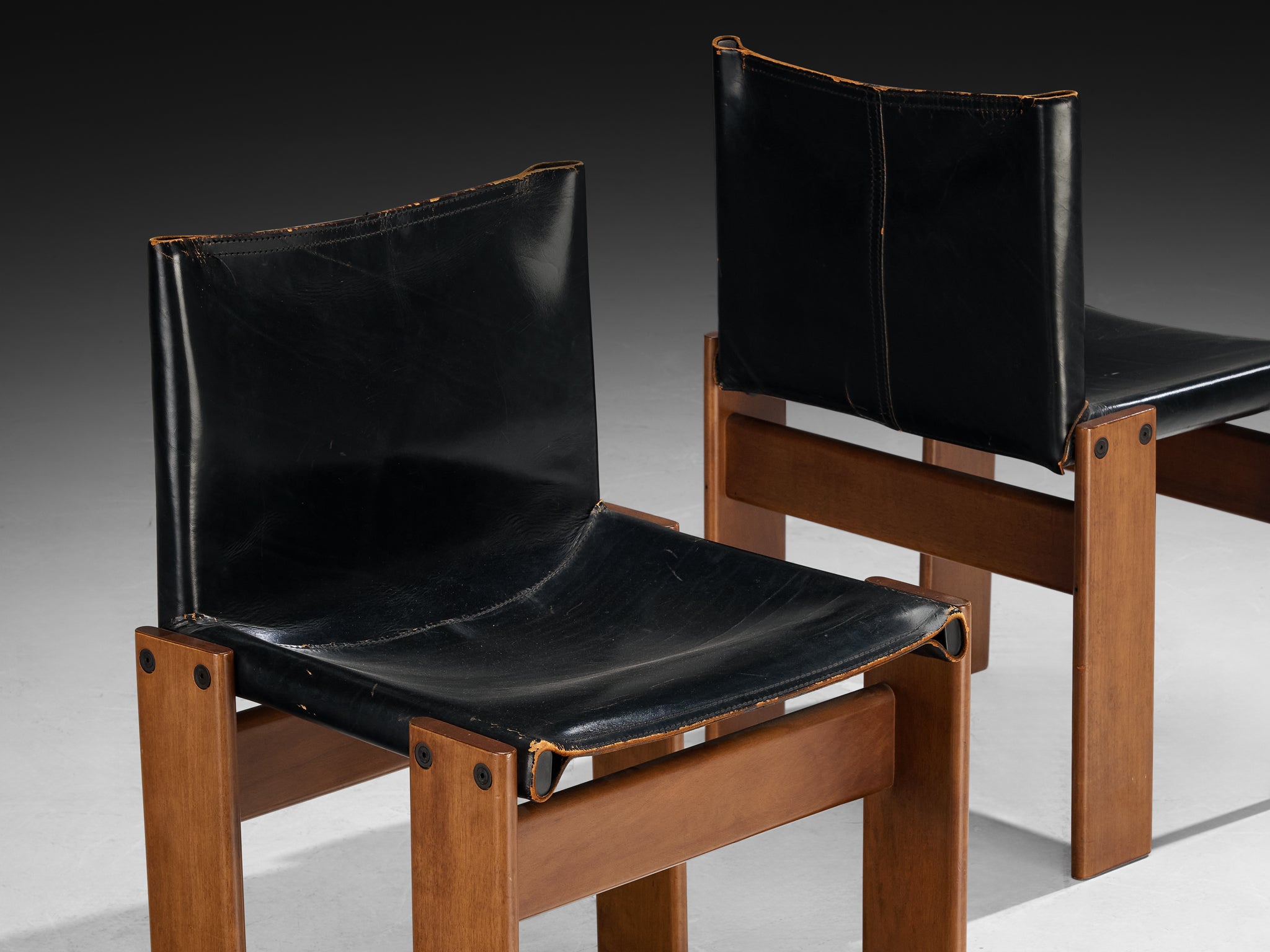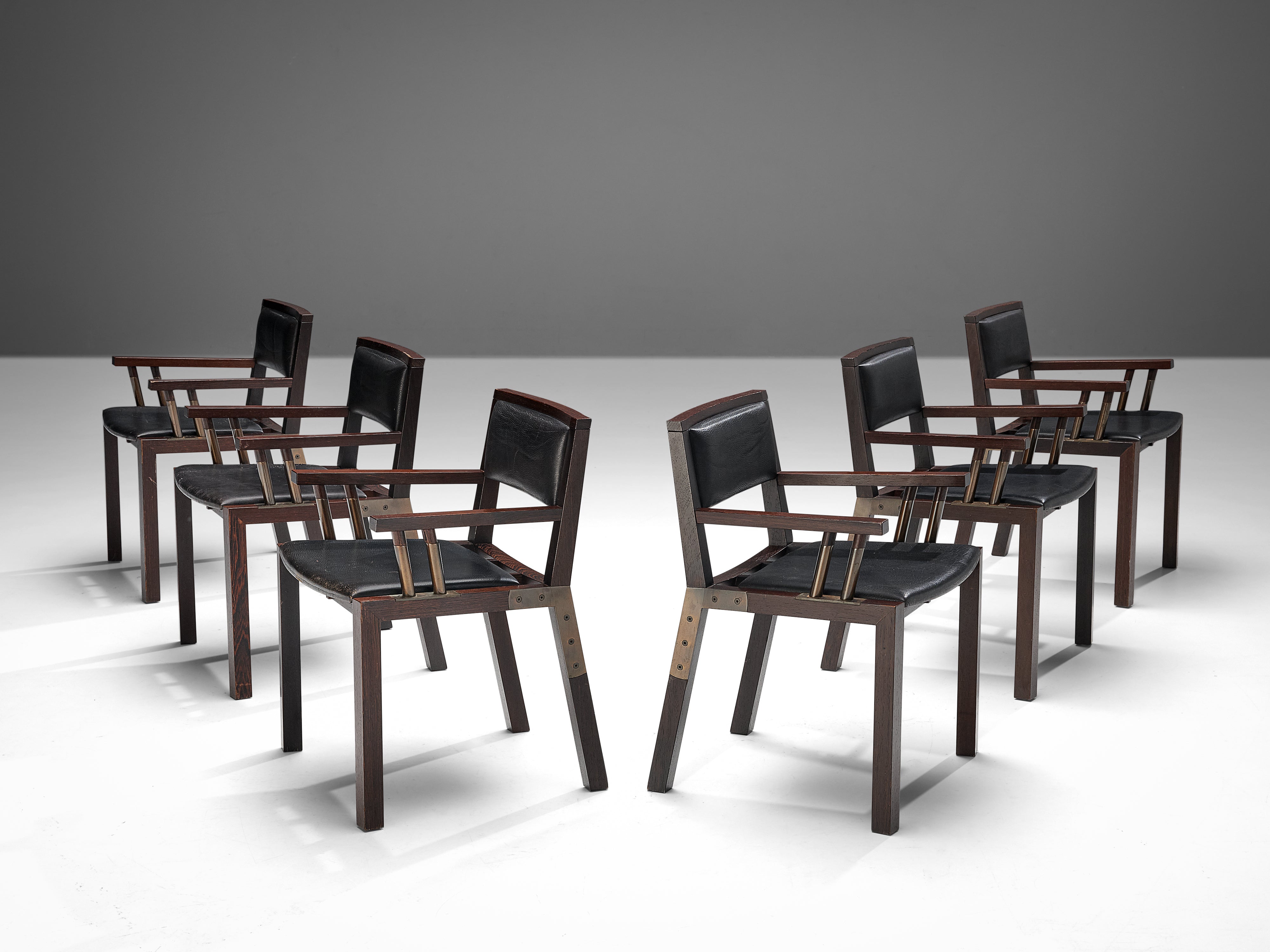 Vico Magistretti for Cassina Carimate Dining Chairs in Leather & Dark Wood