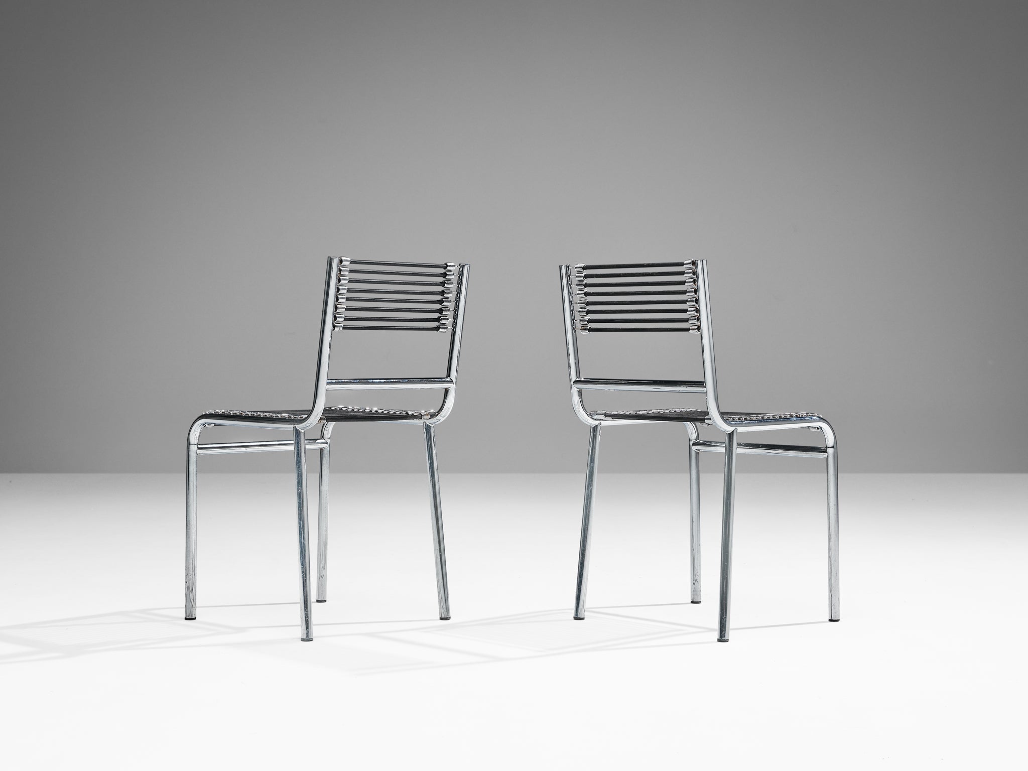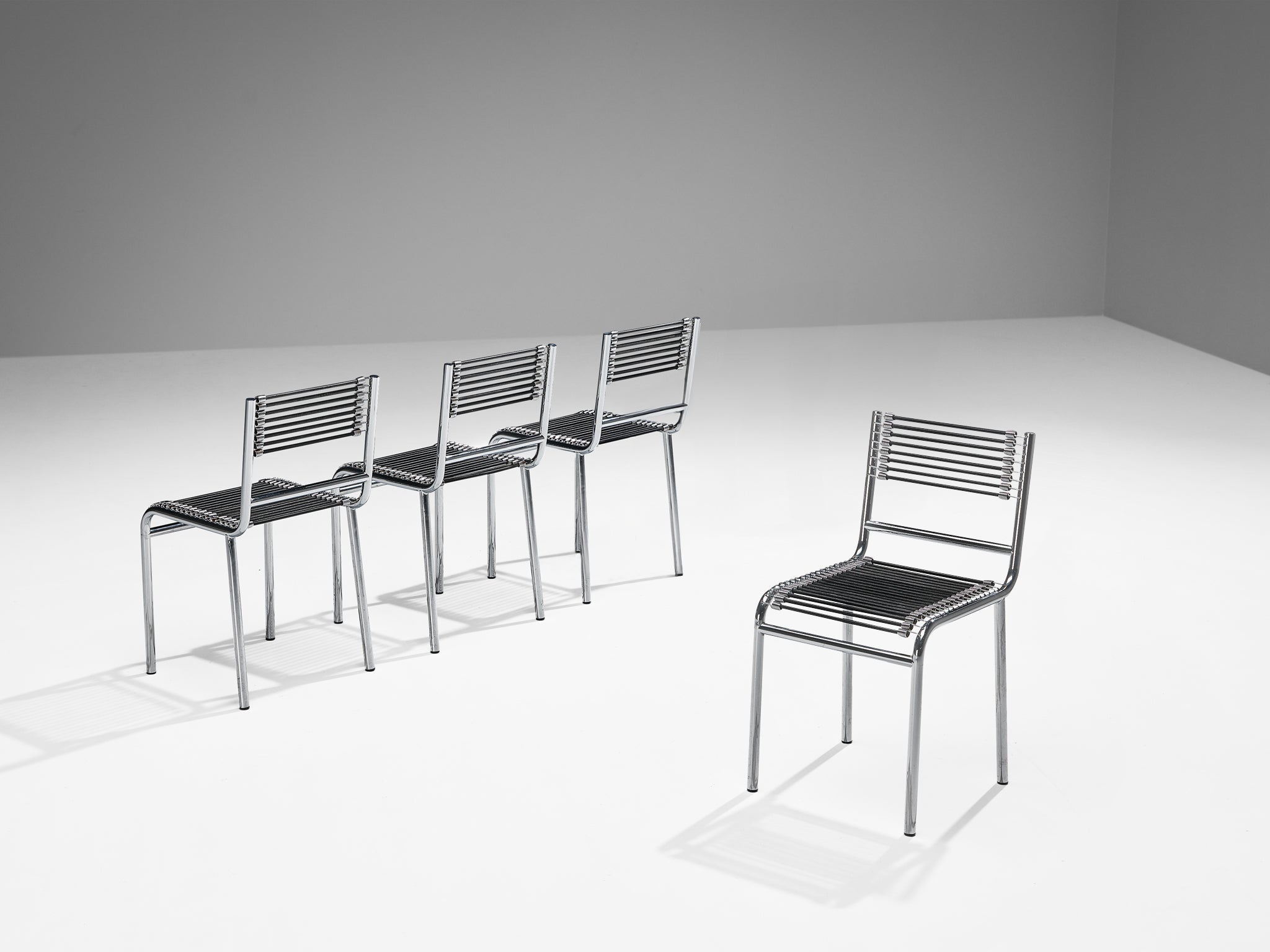 Michel Charron Set of Four Dining Chairs in Plexiglass and Aluminum