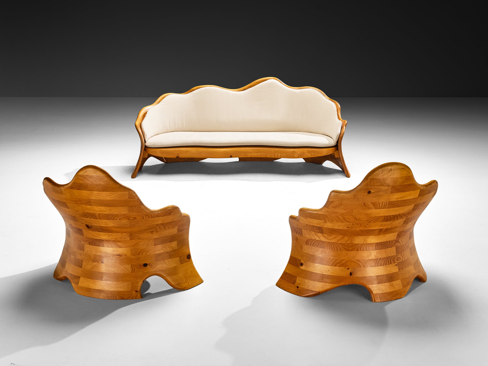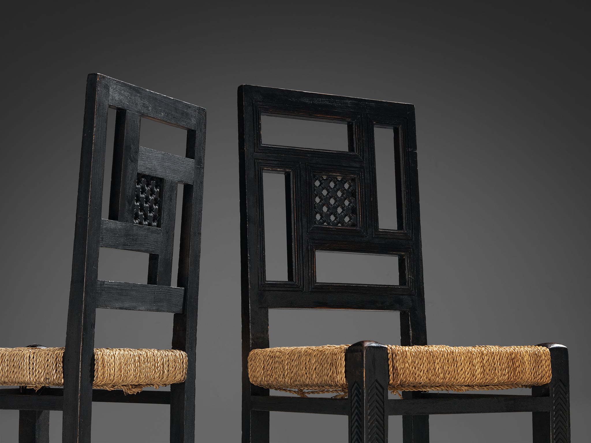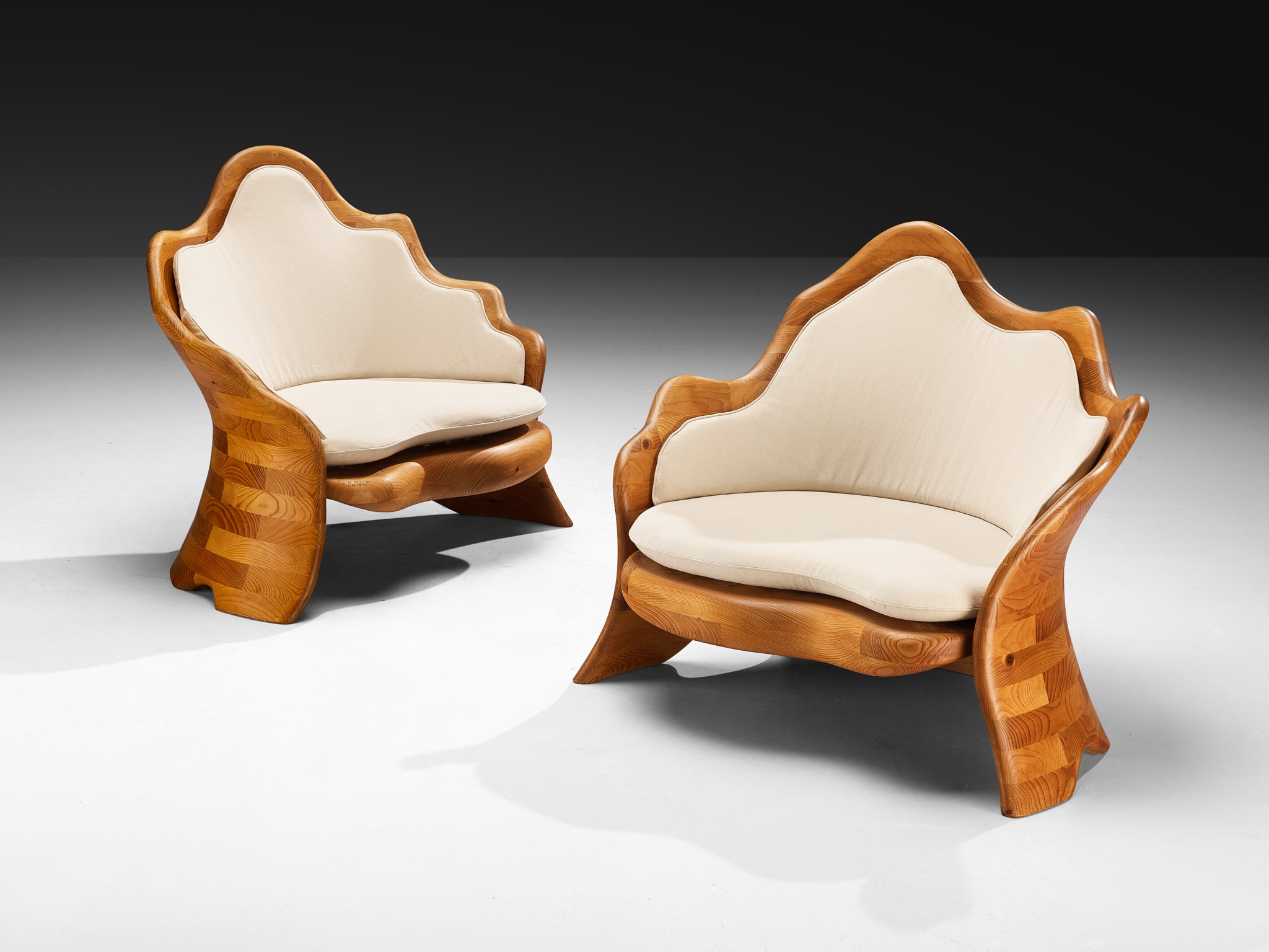 1950s Sculptural French Chalet Set of Eight Carved Chairs in Solid Pine