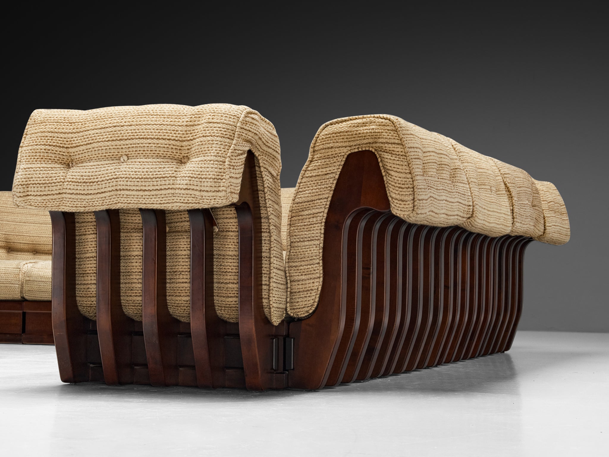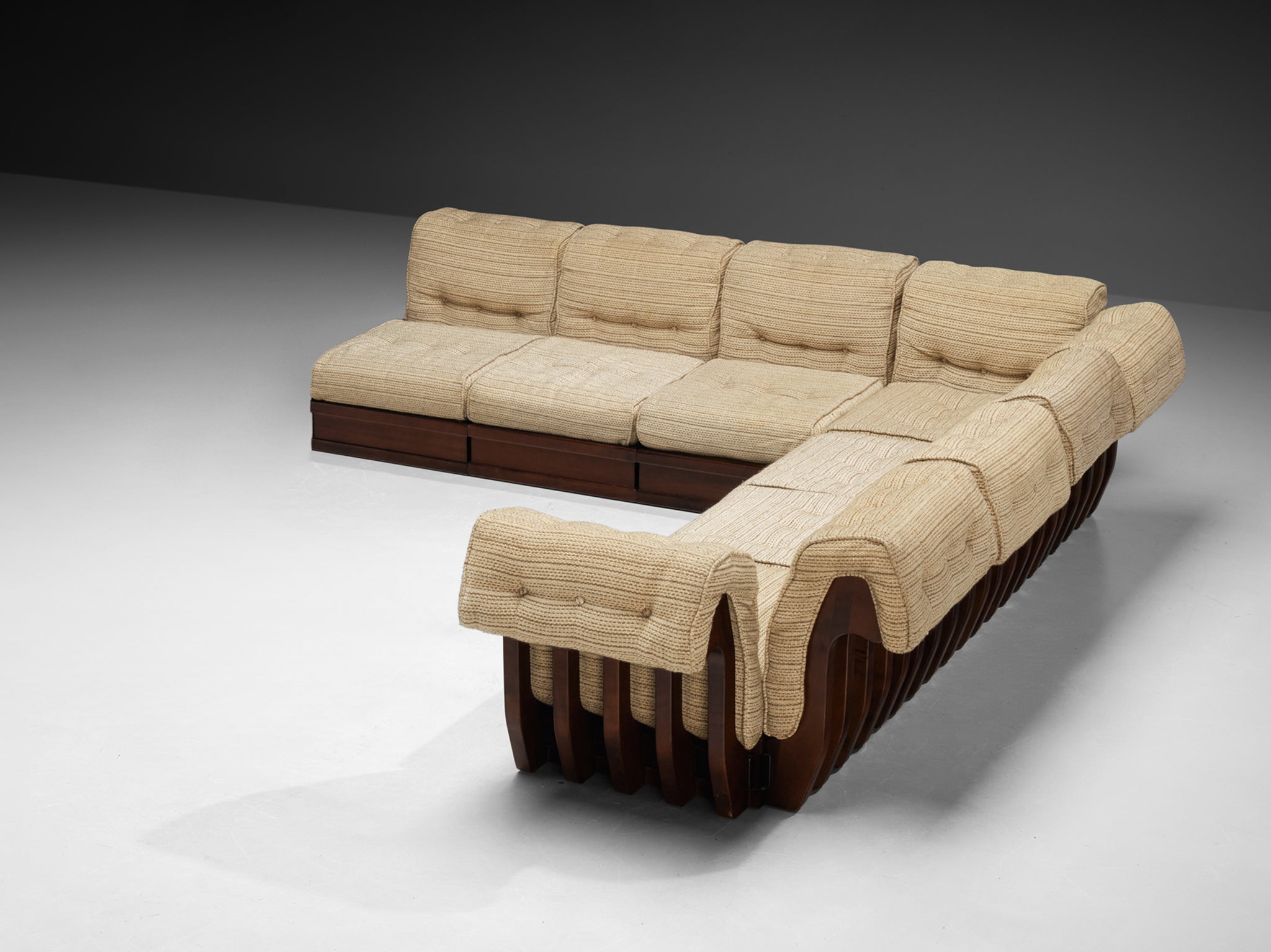 Mid-Century American Sectional Corner Sofa in Finely Striped Upholstery