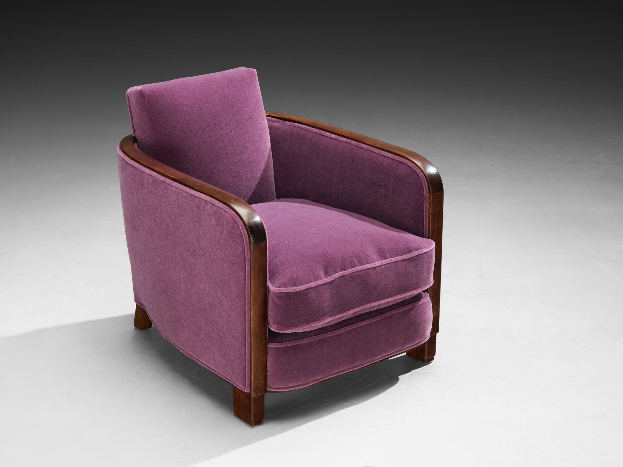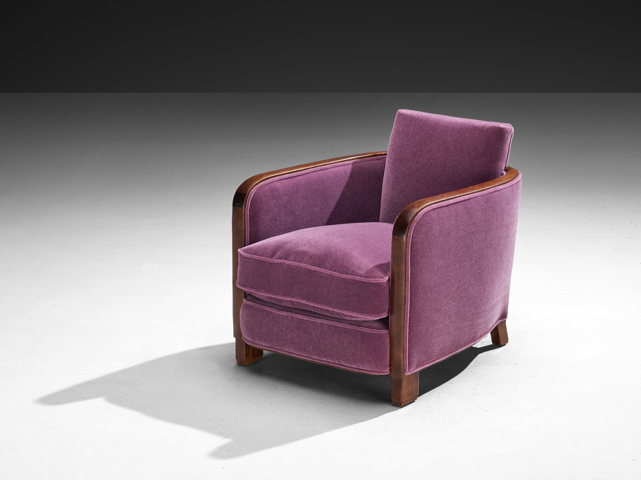 Móveis Drago ‘Novelty’ Armchair in Blue Velvet and Brazilian Hardwood