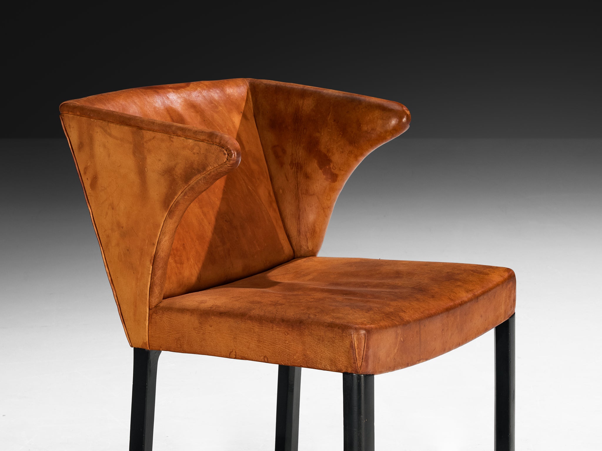 Post-Modern Italian Dining Chairs in Walnut and Cognac Leather
