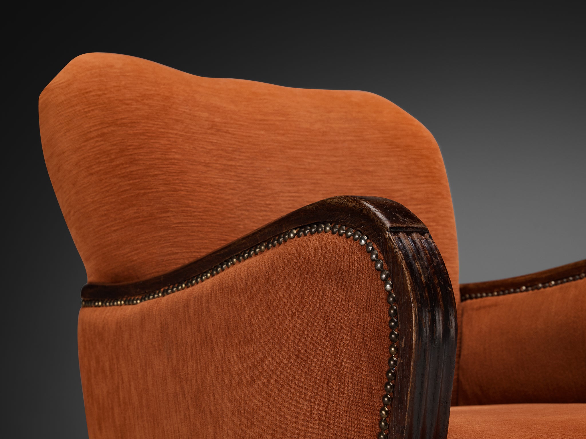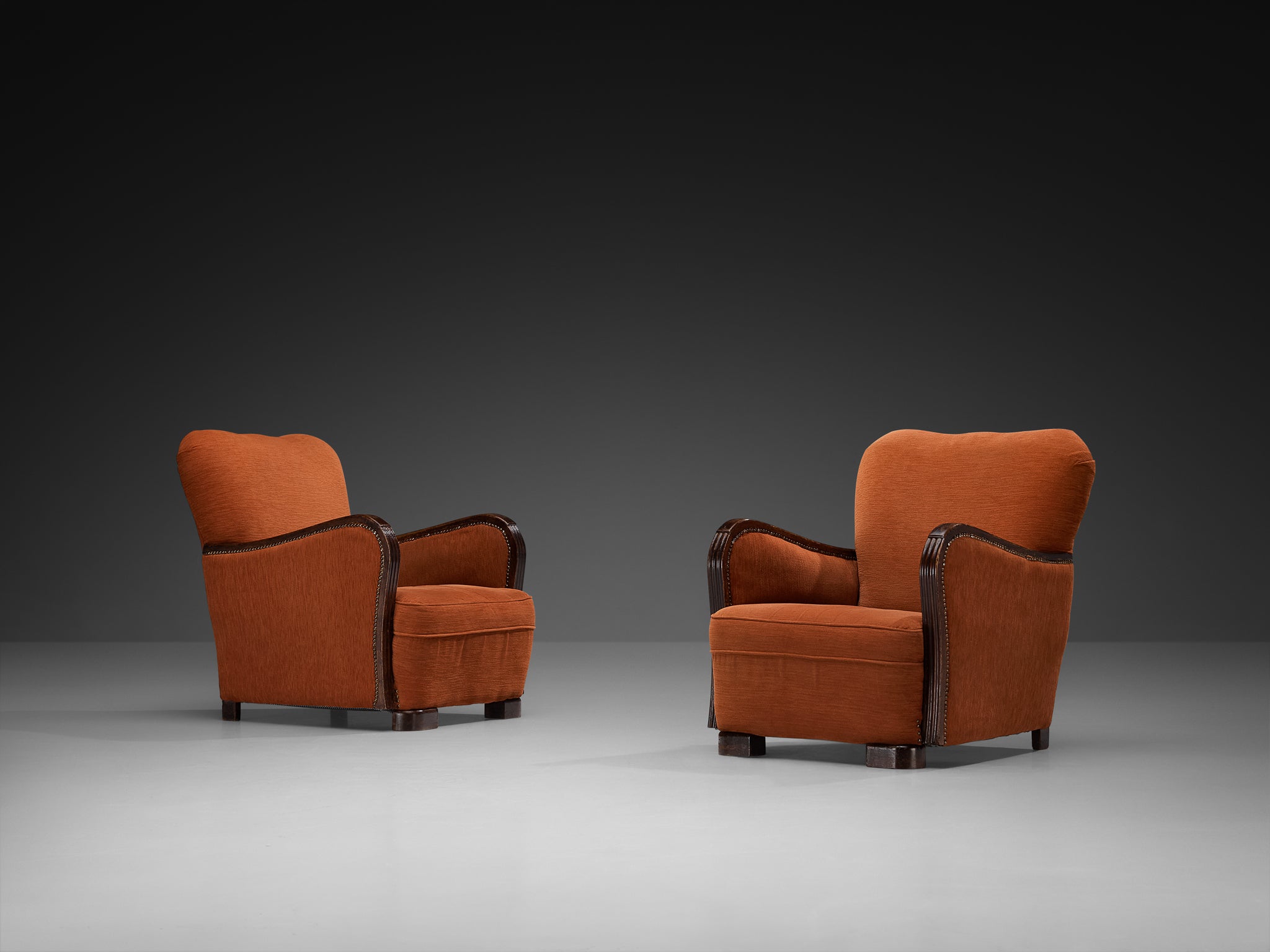 Art Deco Pair of Armchairs in Earthy Grey Fabric