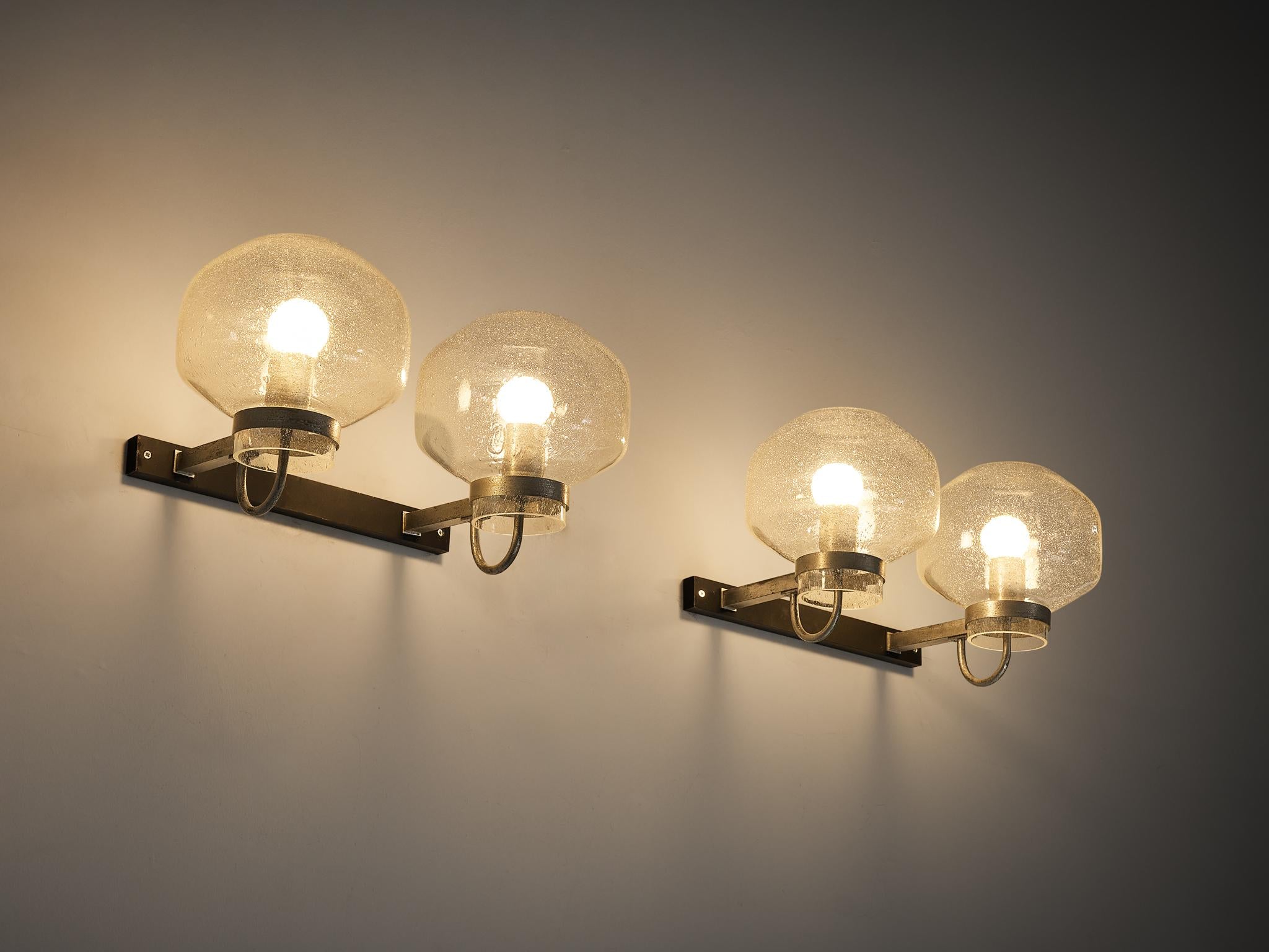 1970s Wall Lights in Black-Coated Aluminum and Blown Glass