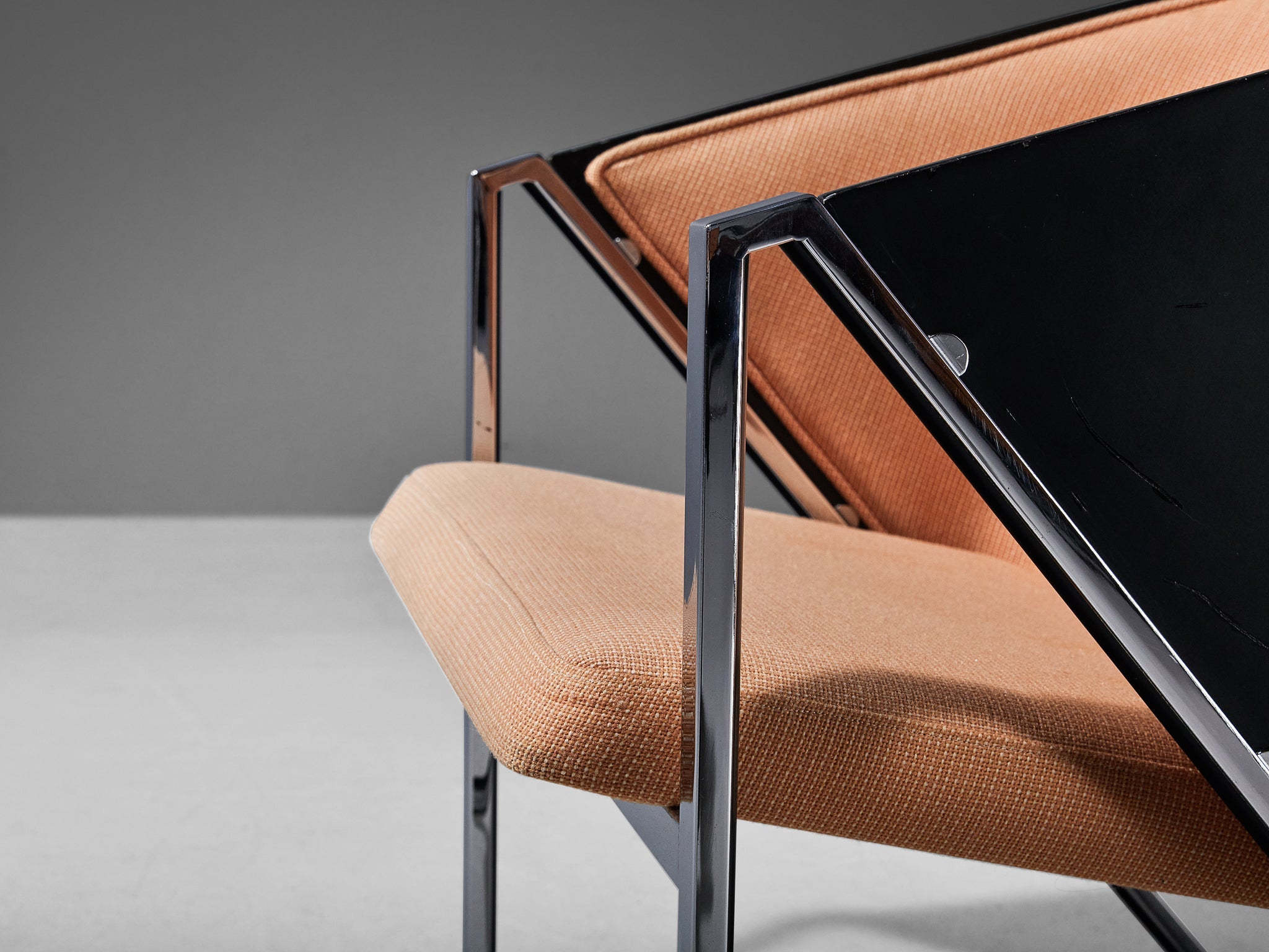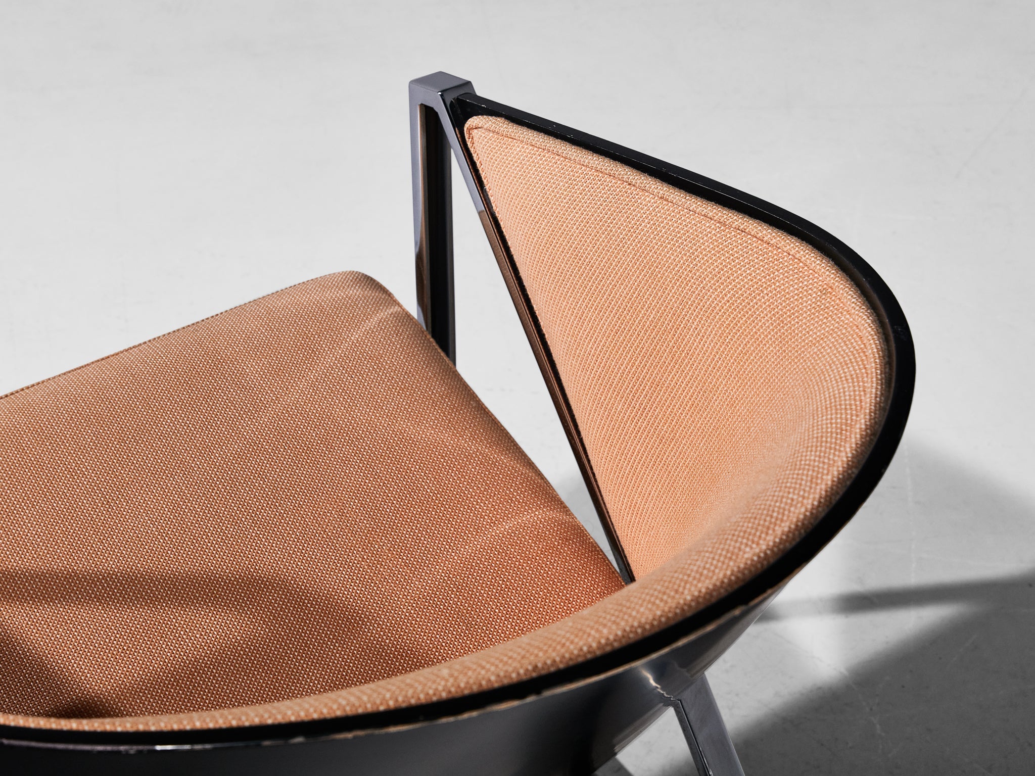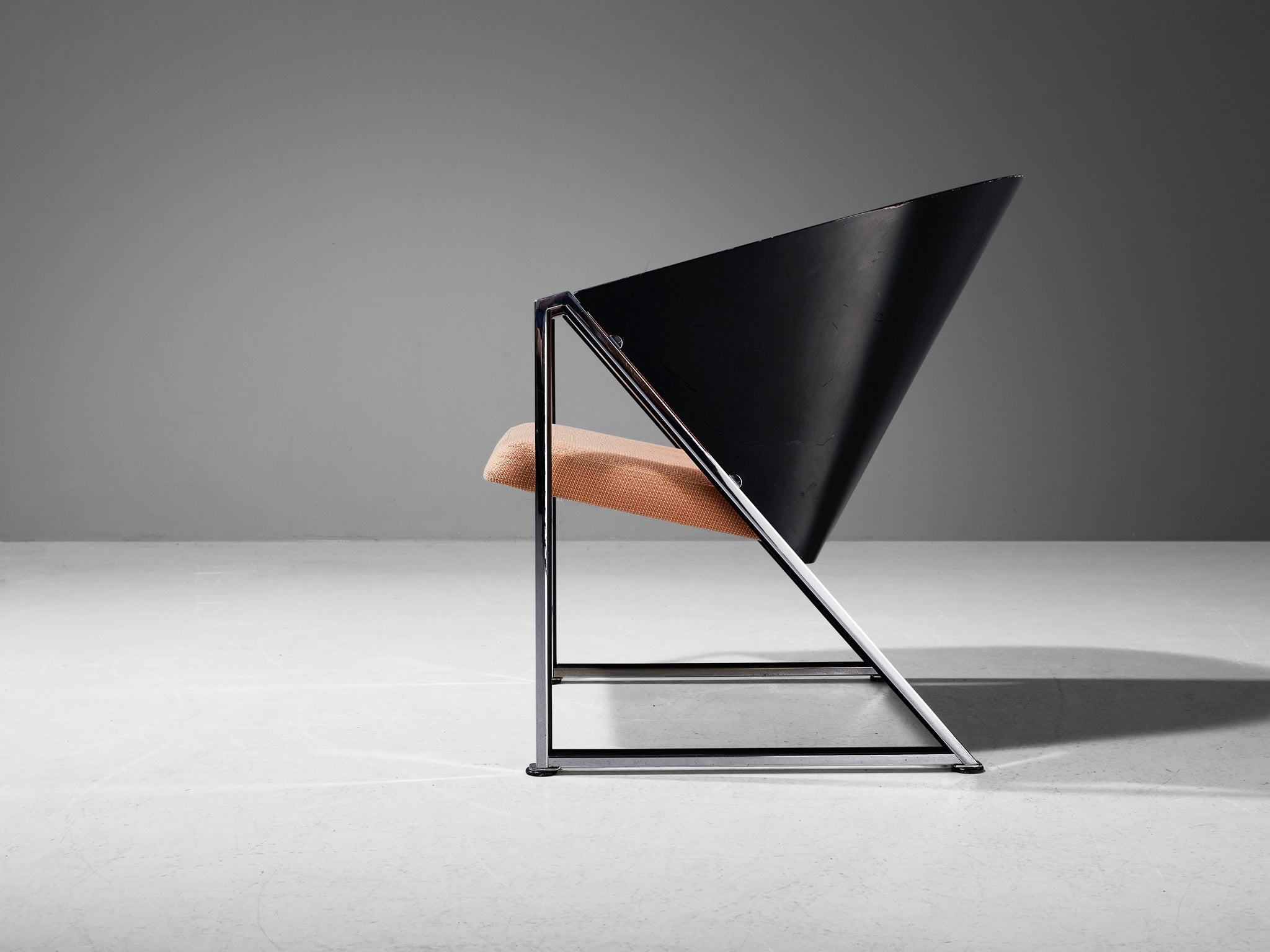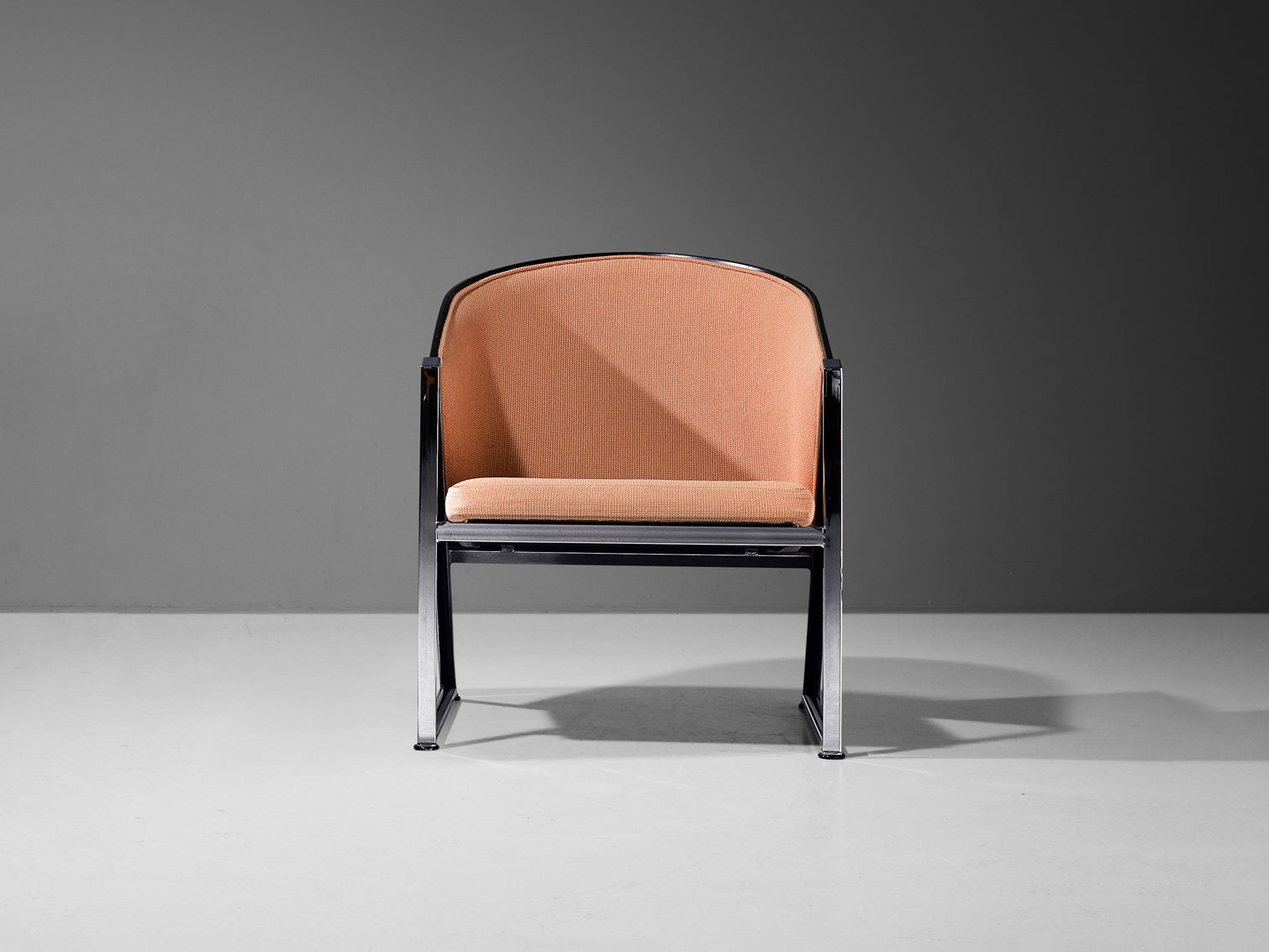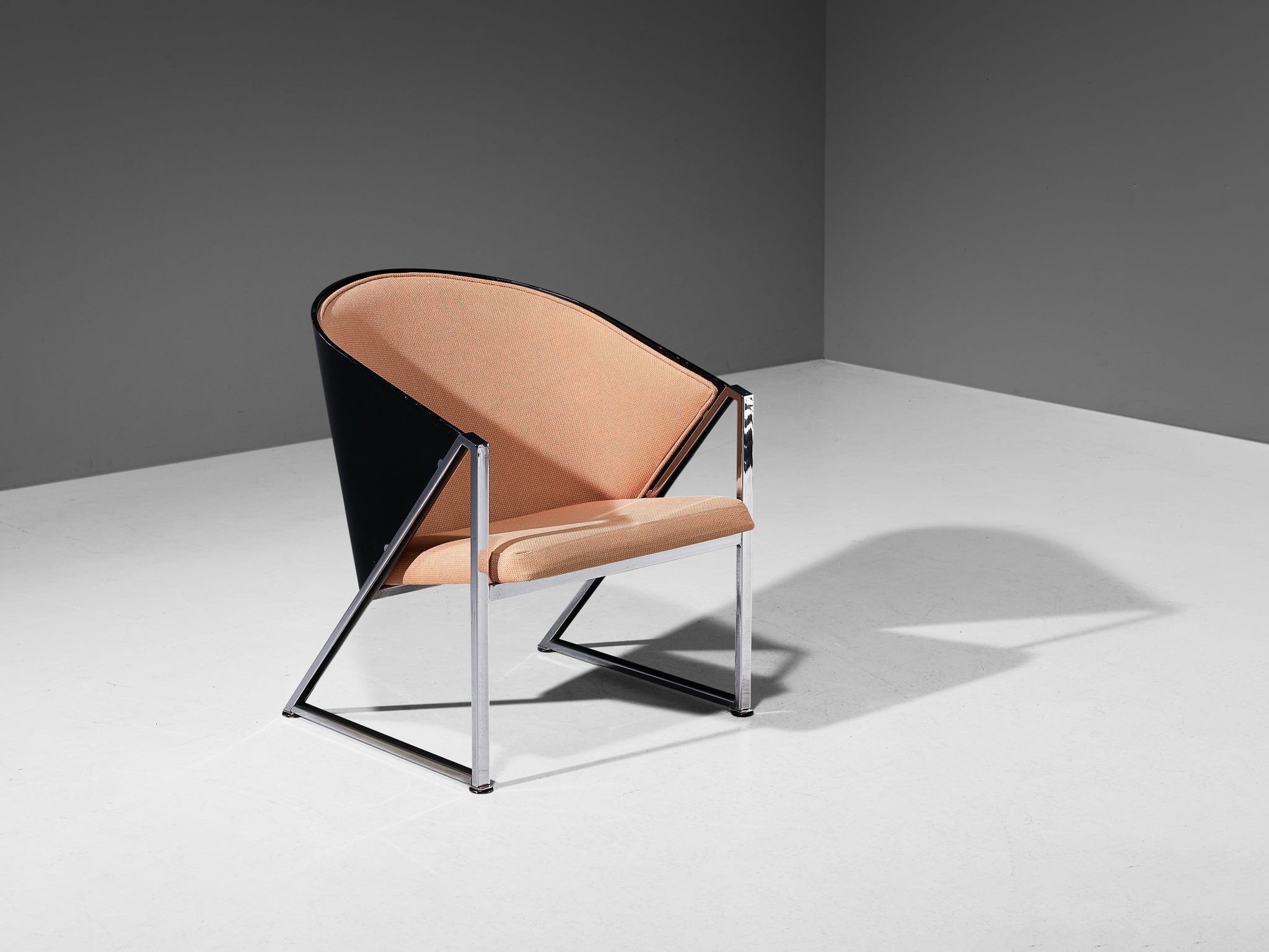 Jouko Järvisalo for Inno Interior OY, armchair model 'Mondi Soft', chrome-plated metal, fabric, lacquered wood, Finland, design 1986
