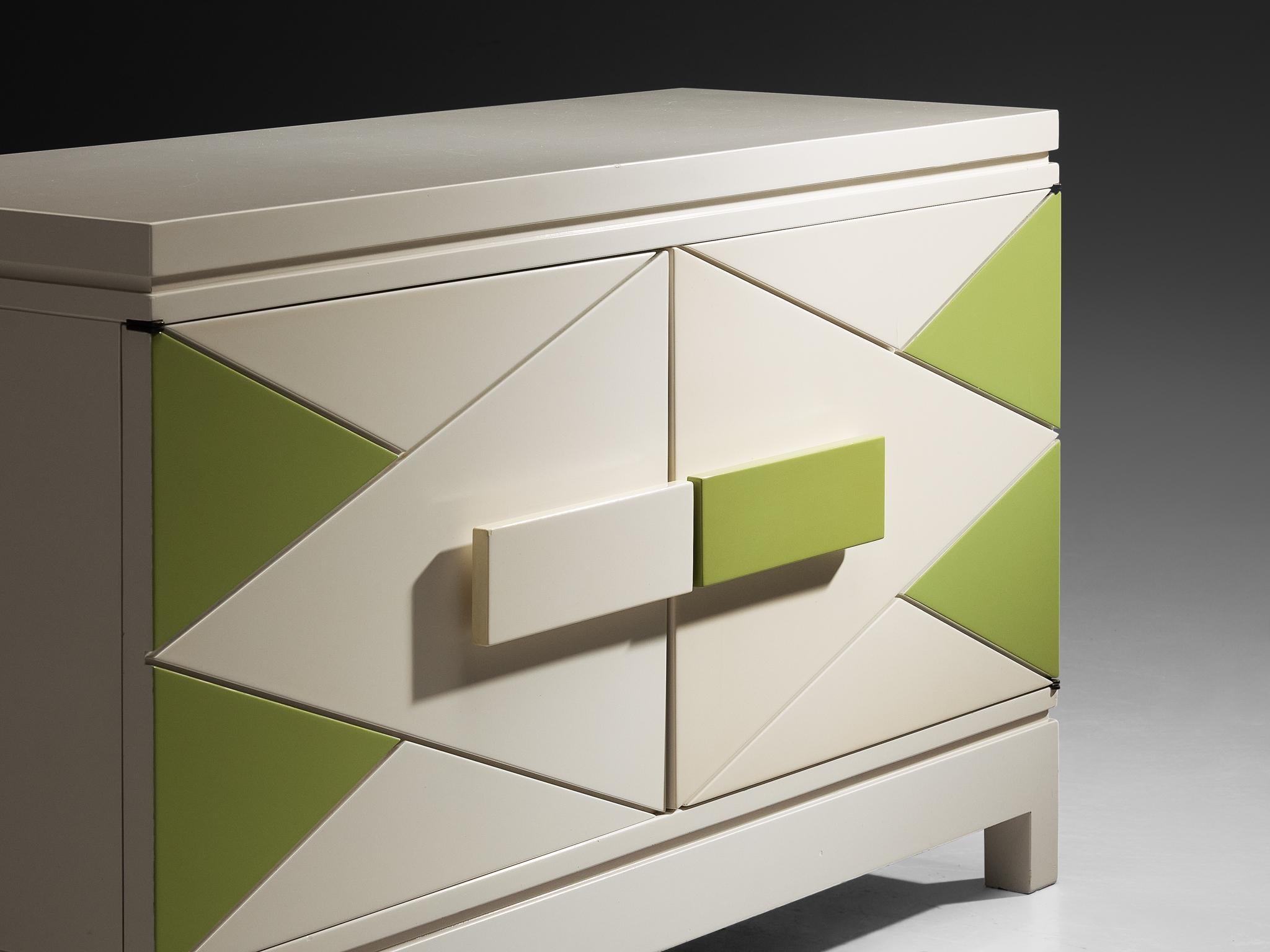 Rare Emiel Veranneman Cabinet in Off-White and Green Lacquered Wood