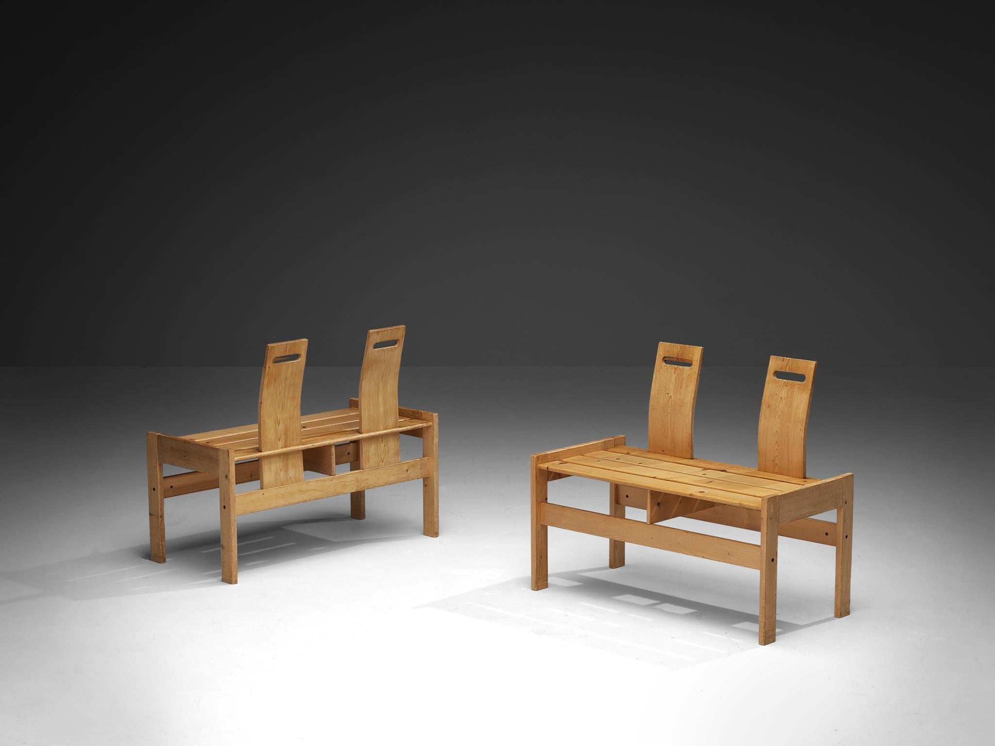 Benches, solid pine, Europe, 1980s