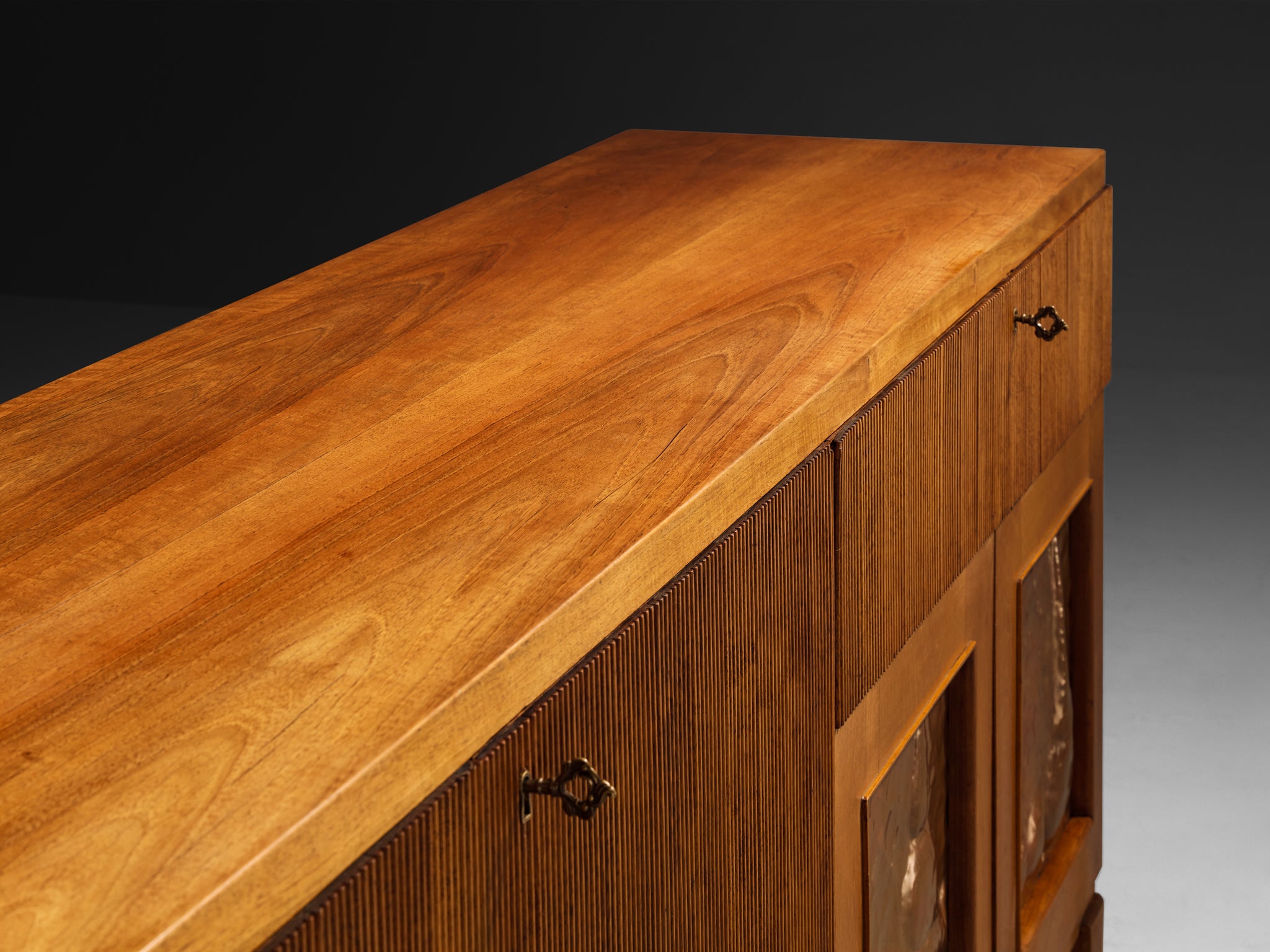 1940s Italian Sideboard in Walnut with Grissinato Carvings and Copper Reliefs