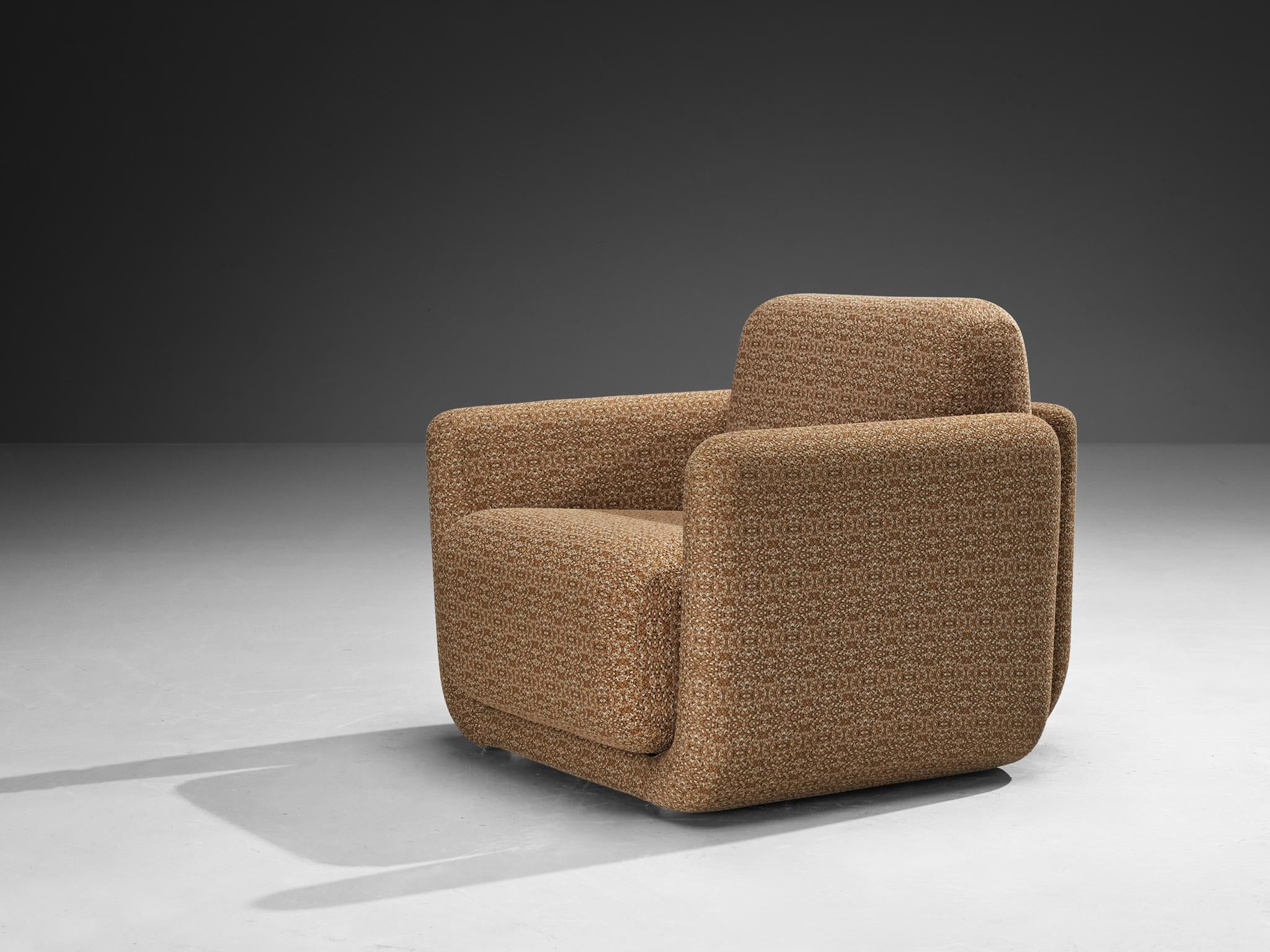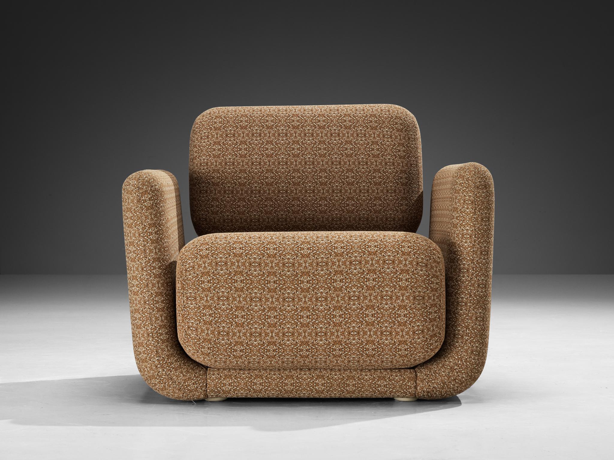 1970s Post-Modern Lounge Chair in Beige Patterned Fabric