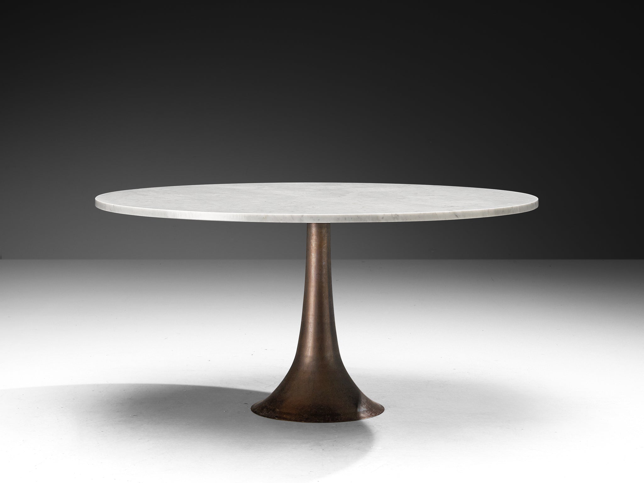 Angelo Mangiarotti for Bernini, dining table, model '302', cast bronze, marble, Italy, 1959