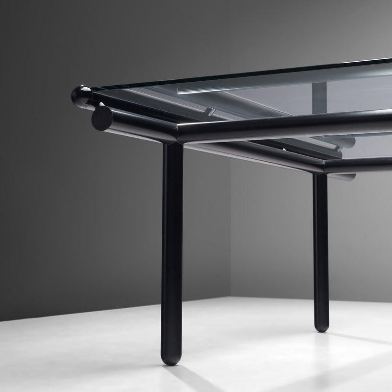 Cassina Dining Table 'Capri' in Black Metal and Glass