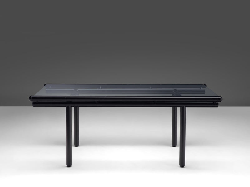 Cassina, 'Capri' dining table, glass, lacquered metal, Italy, 1970s.