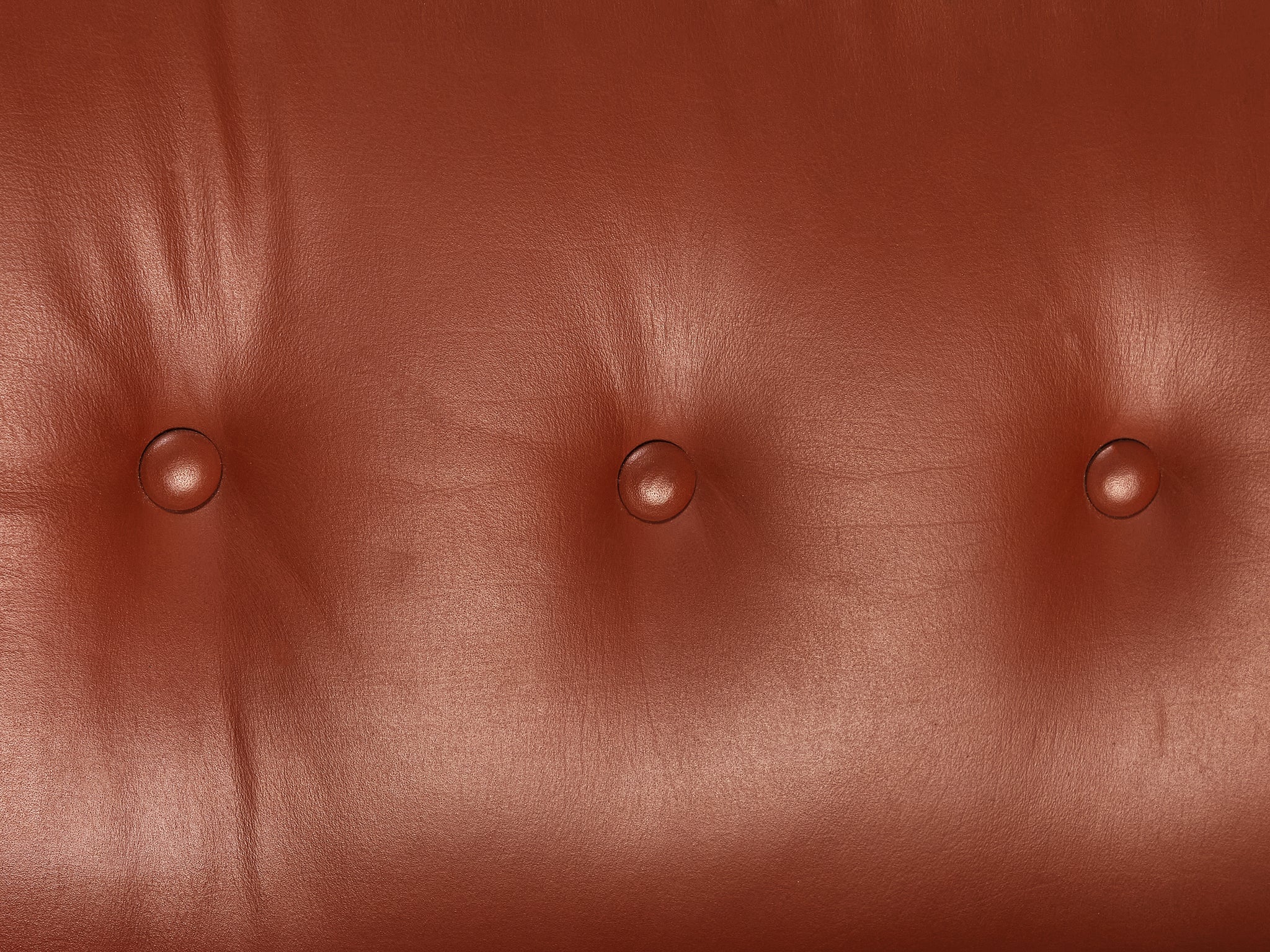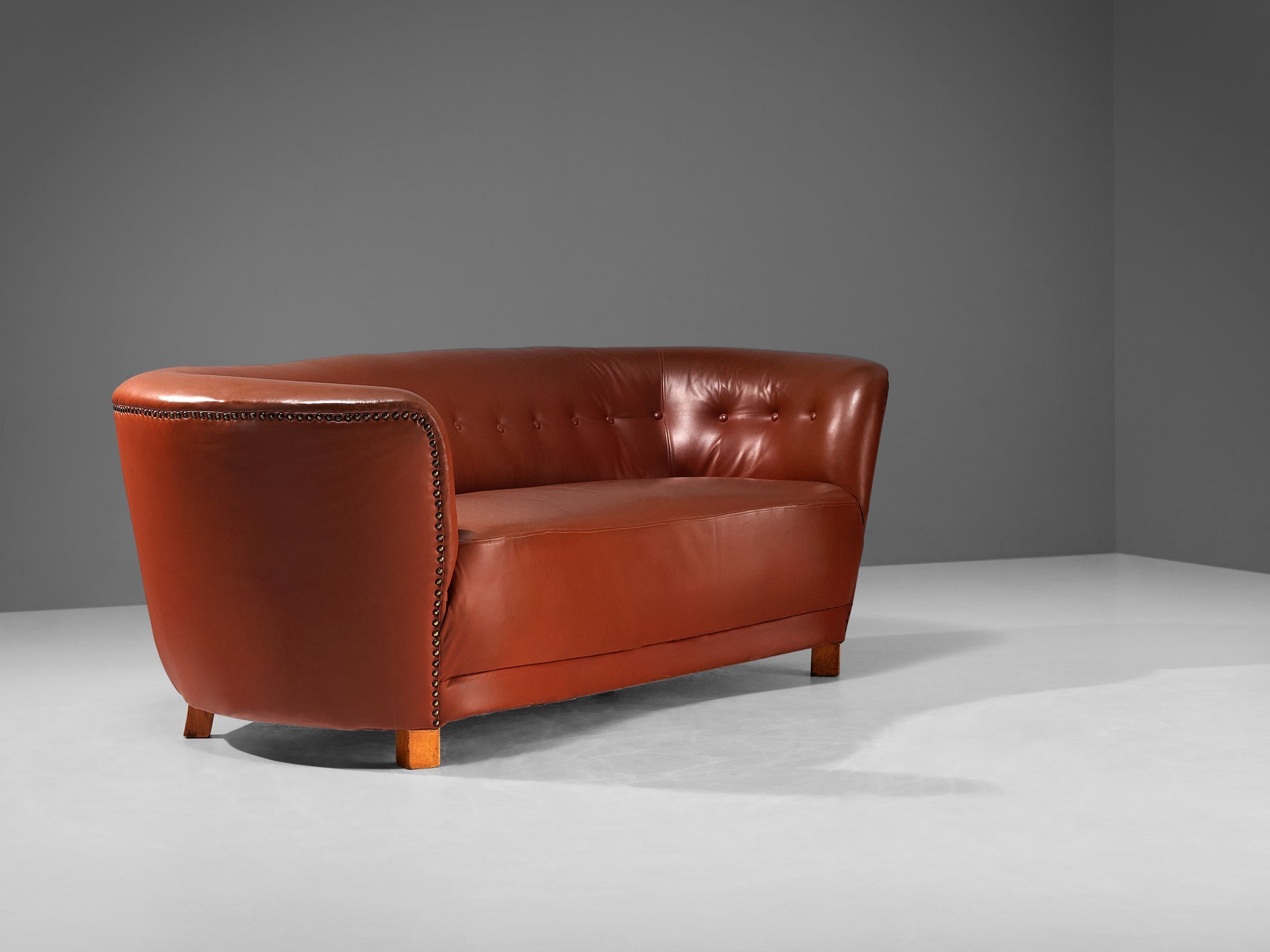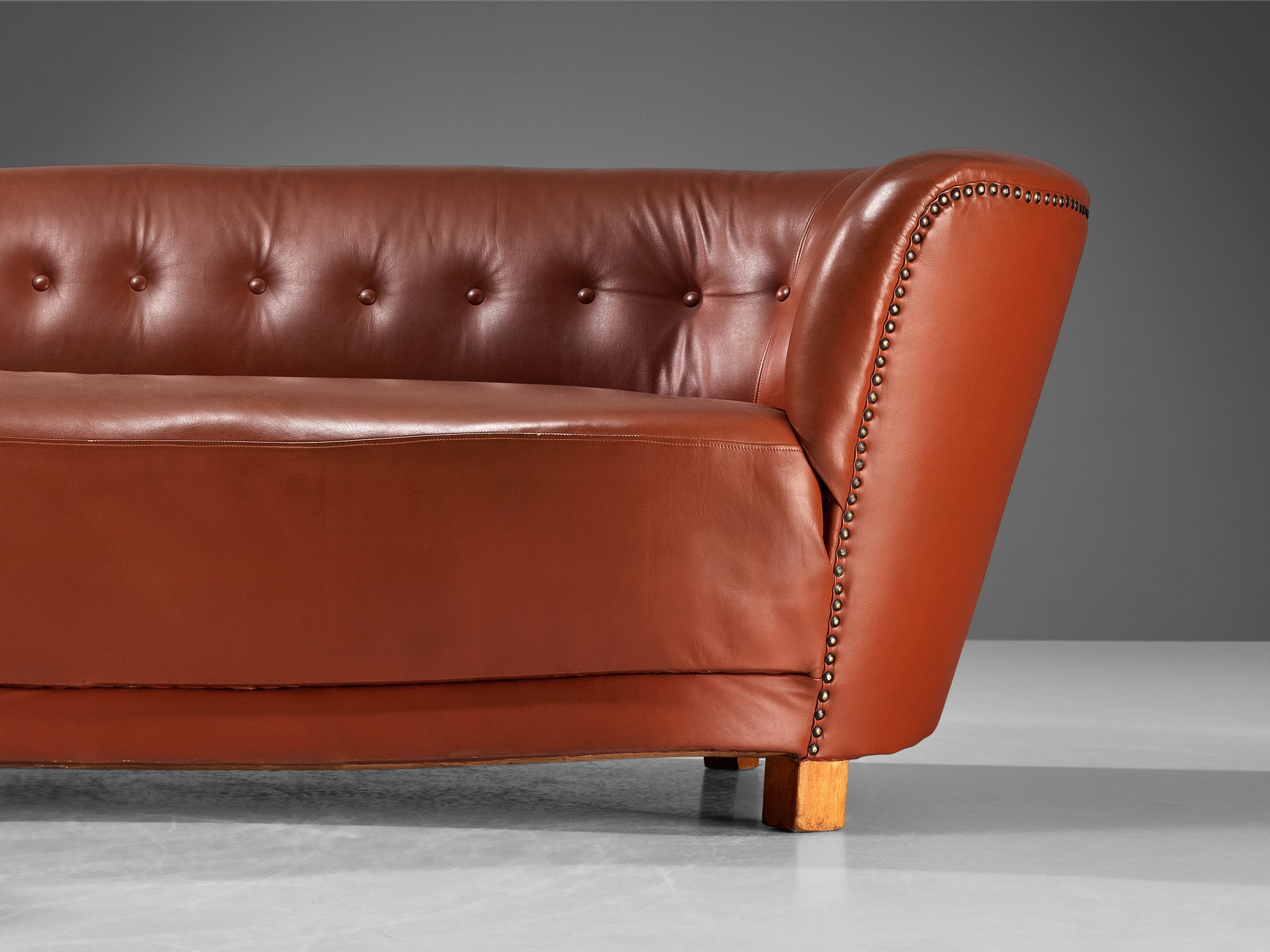 Danish Banana Sofa in Cognac Brown Faux Leather