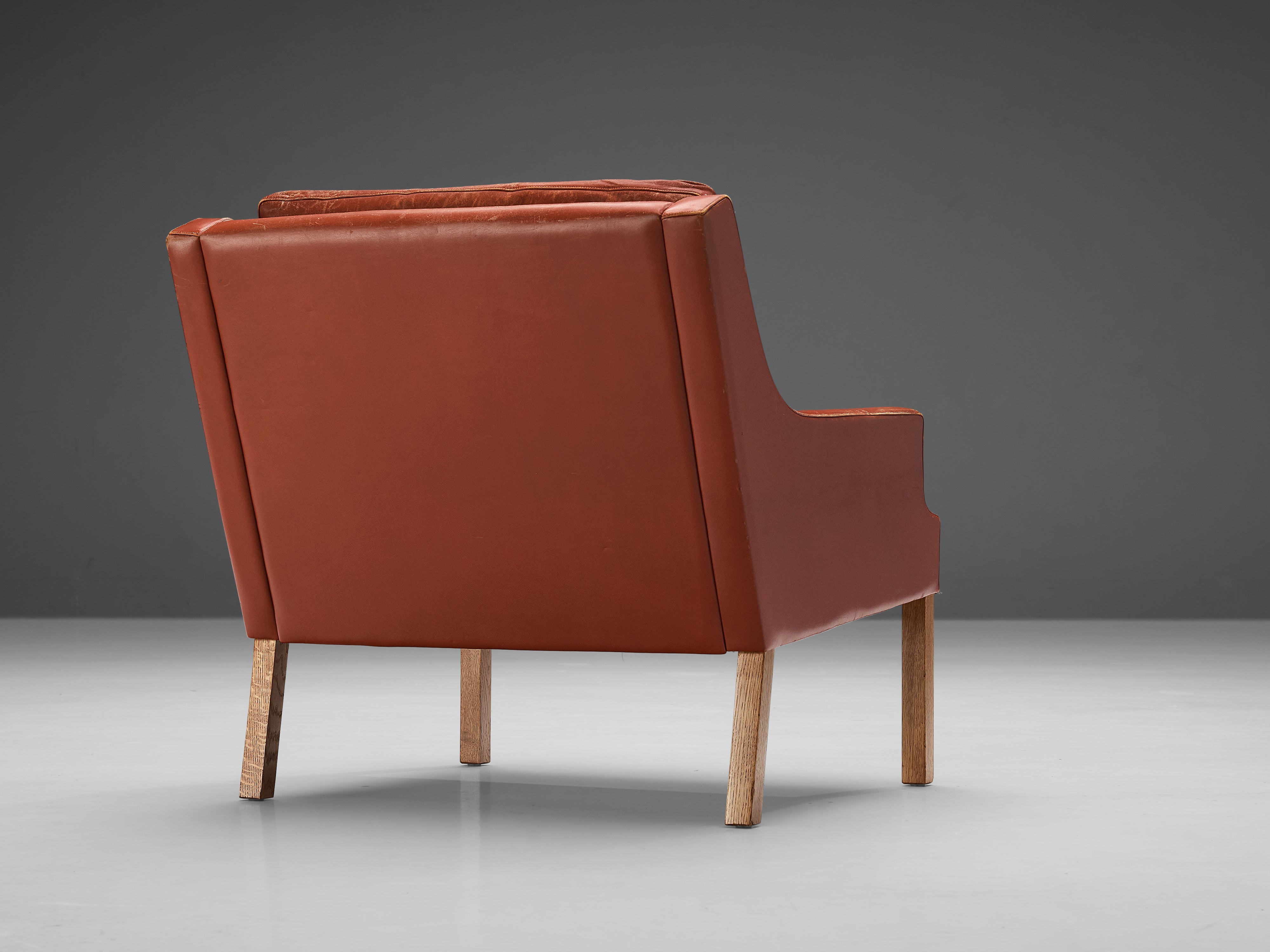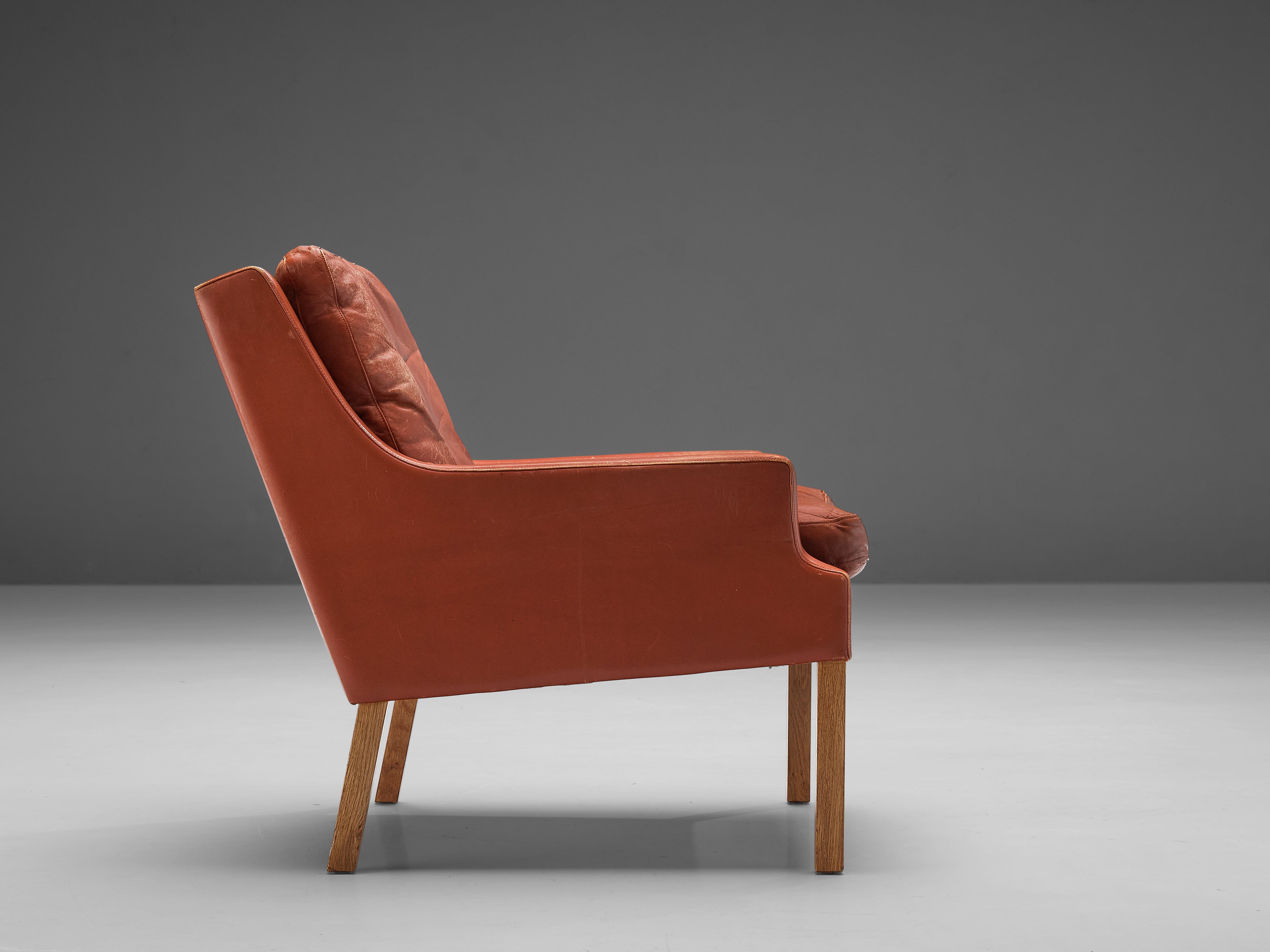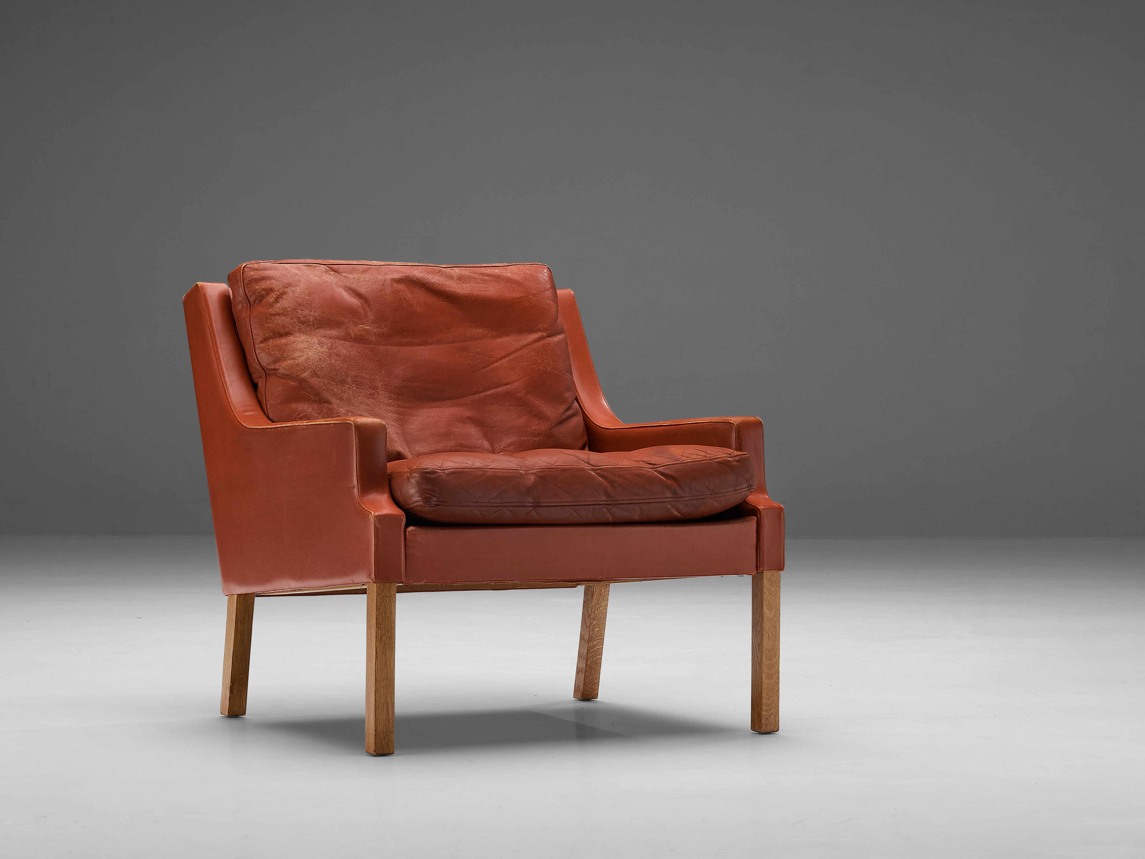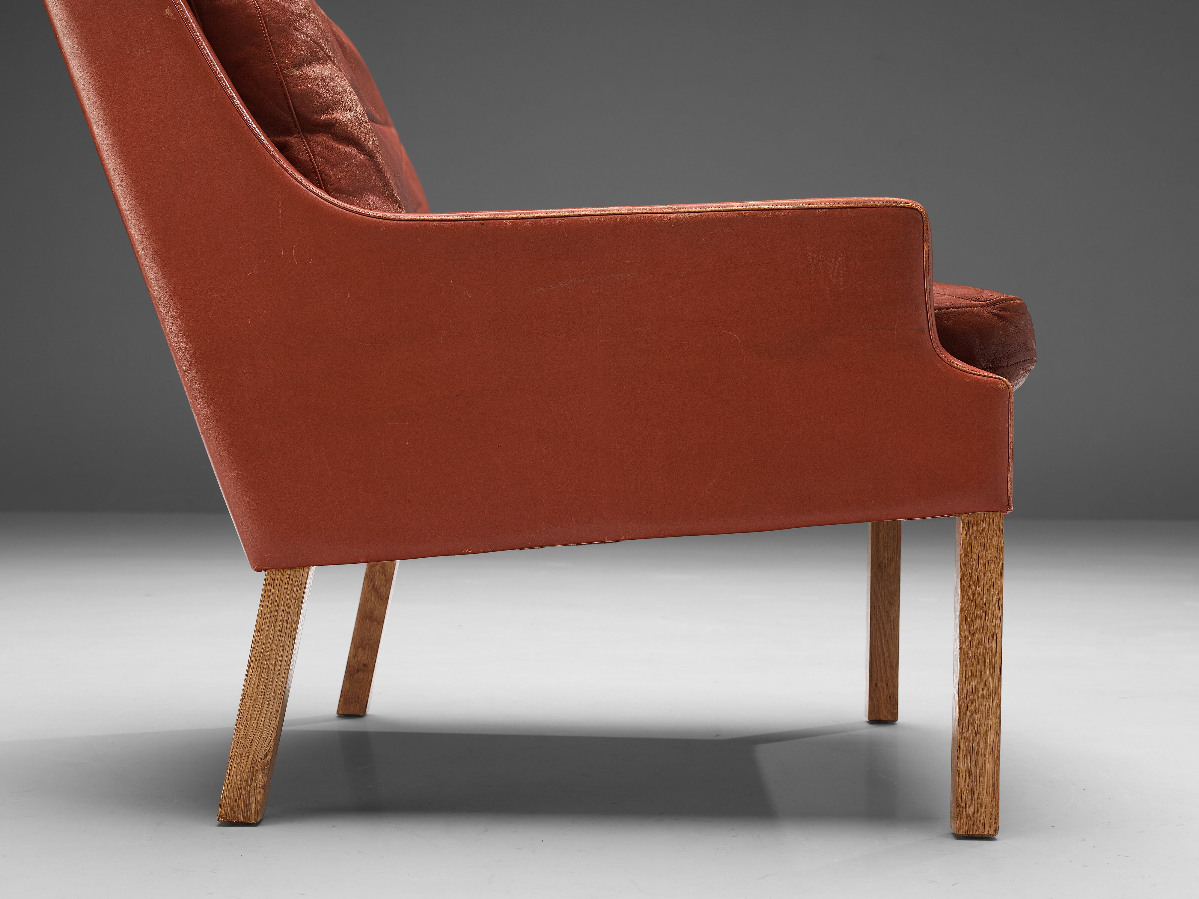 Danish Lounge Chair in Oak and Patinated Red Leather