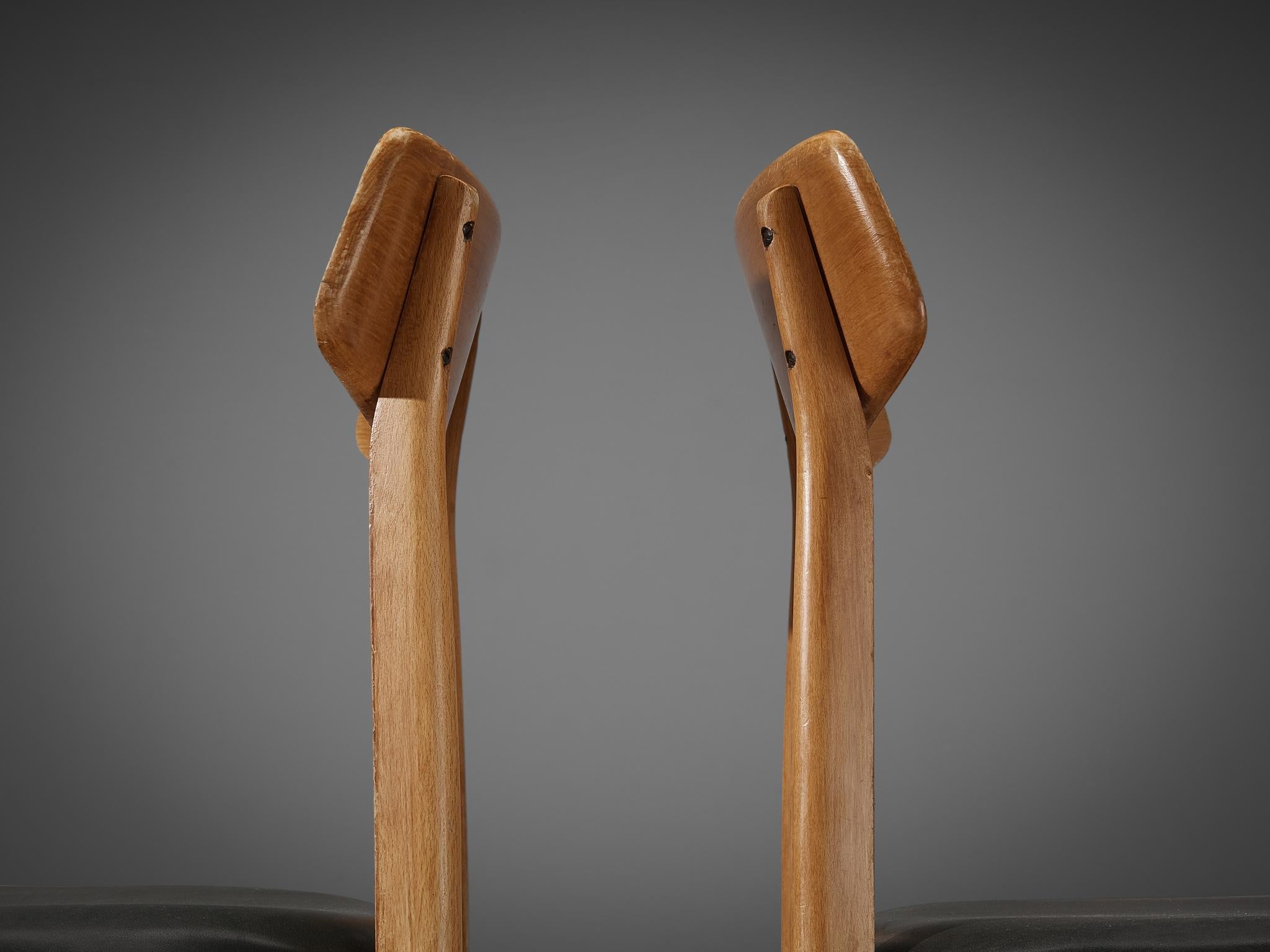 Set of six dining chairs, beech, faux leather, Denmark, 1960s.