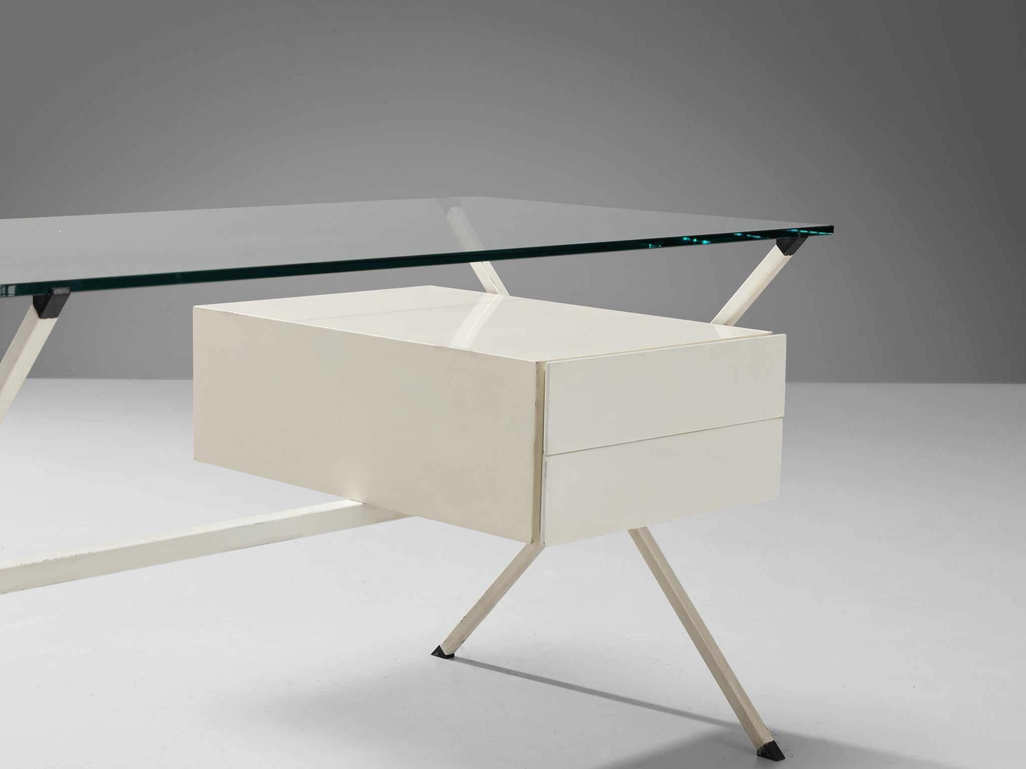 Franco Albini’s model 80 desk combines glass, steel and wood which resulted in a minimalistic balance. The desk features Albini’s design philosophy and minimalist aesthetic, the design derives its appeal through simplicity of form and celebration of material, without extraneous ornamentation. This model is an early edition of the model 80 design.