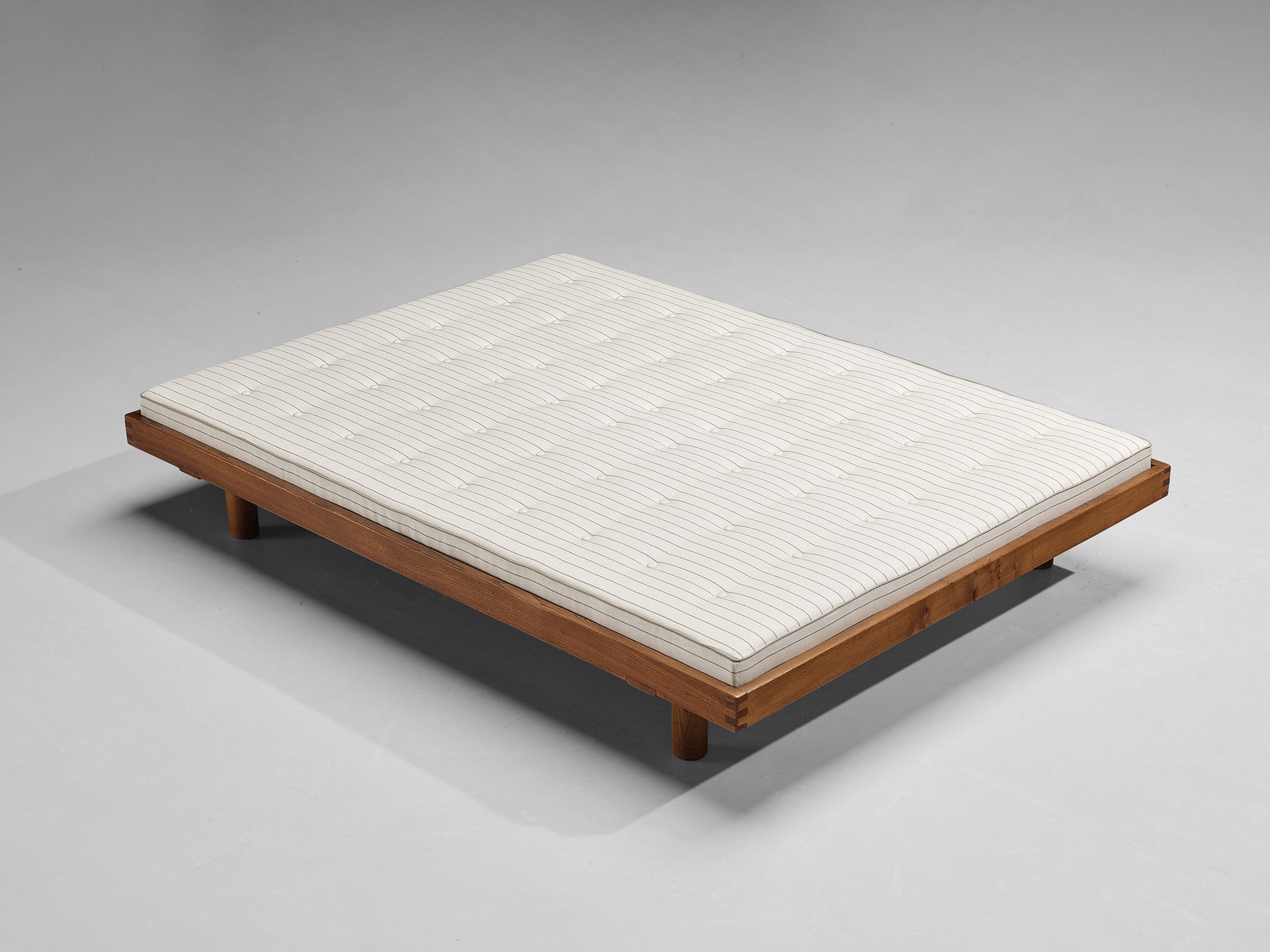 This daybed is an early edition designed by the French designer and master woodworker Pierre Chapo (1927-1987), known for his hallmark use of solid elmwood and a commitment to pure and clean design and construction principles. The L01 bed by Pierre Chapo is characterized for its taut, sober design with simple lines and the box joints at the corners of the frame. Chapo designed this daybed in 1959 for the writer Samuel Becket and named it 'Godot', in reference to the play 'Waiting for Godot'.