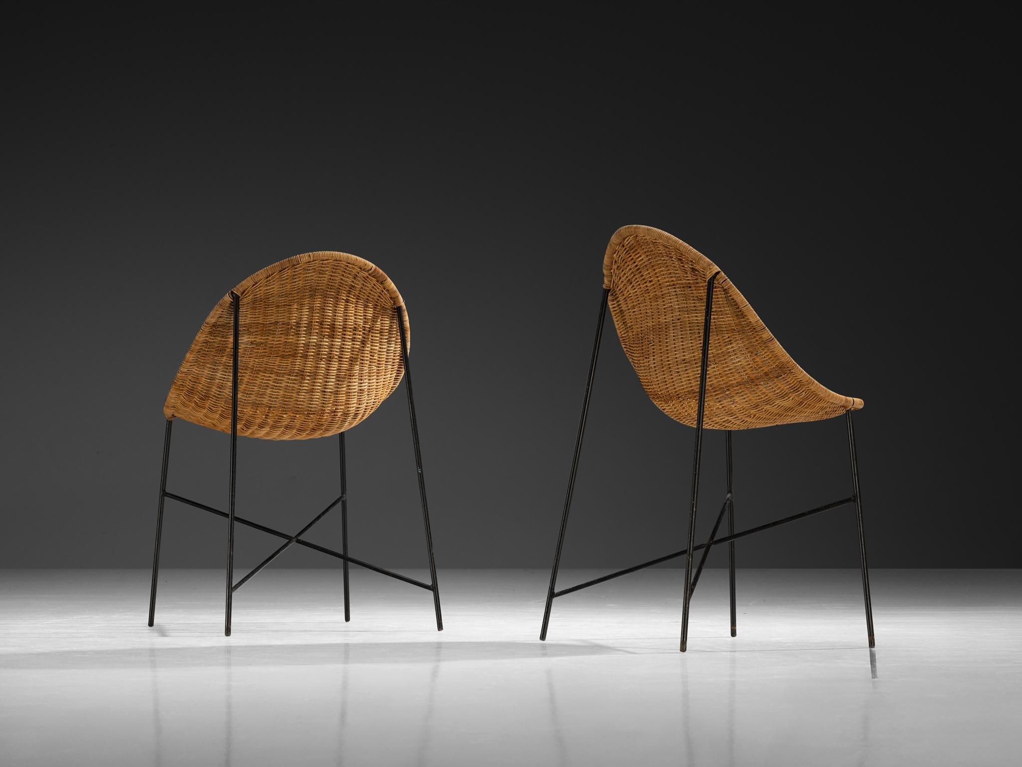 Georges and Hermine Laurent, set of six dining chairs, cane, coated steel, Italy, 1950s