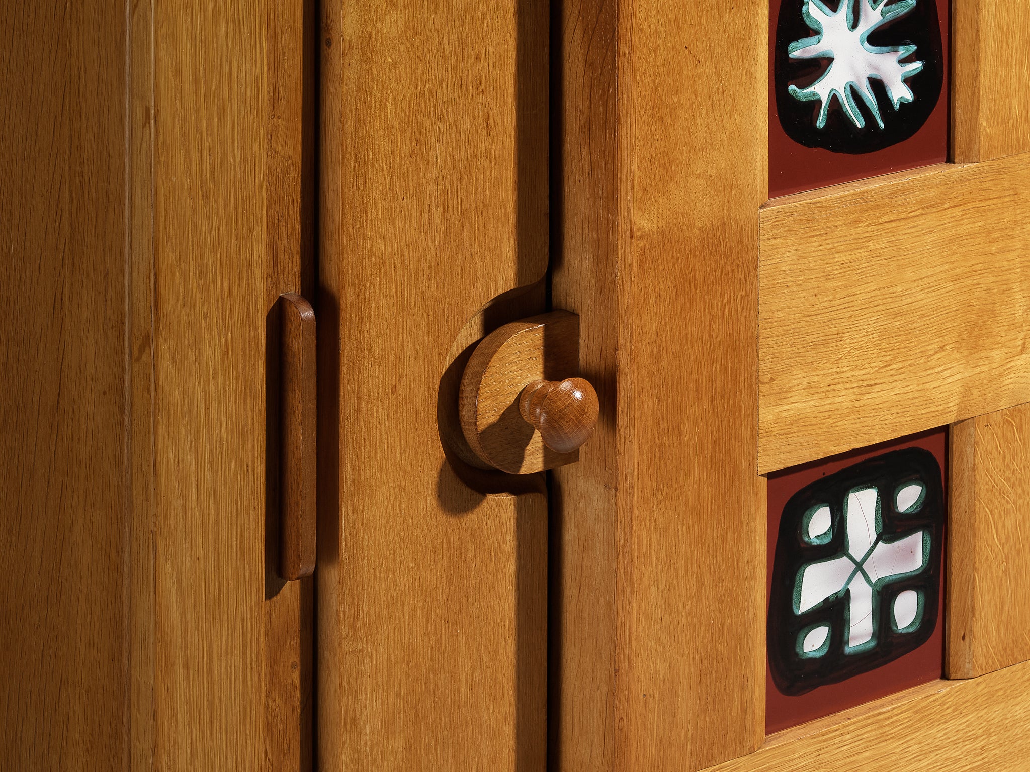Guillerme et Chambron for Votre Maison, sideboard, solid oak, ceramic, France, 1960s