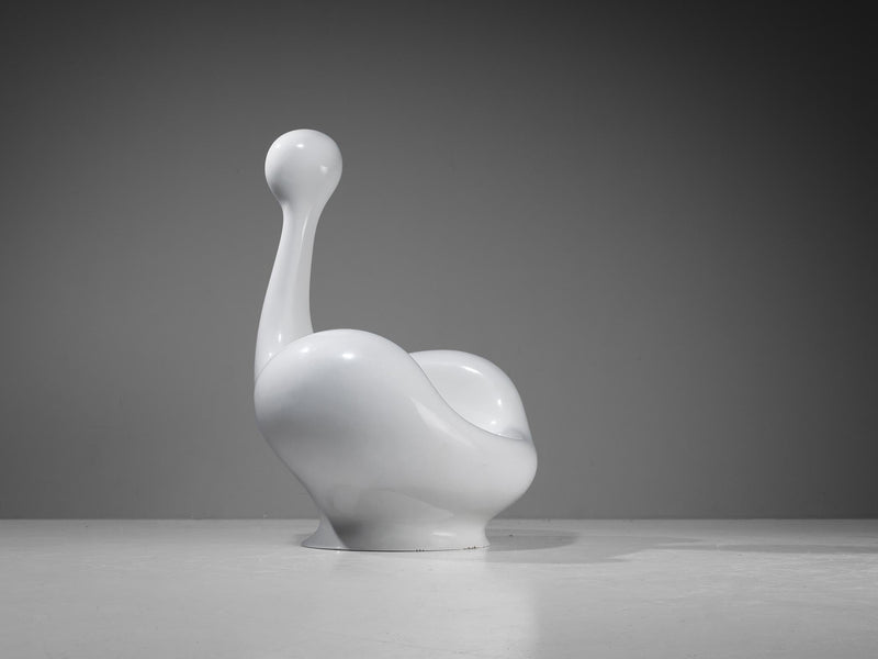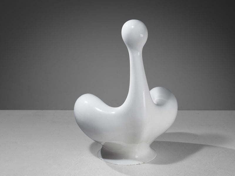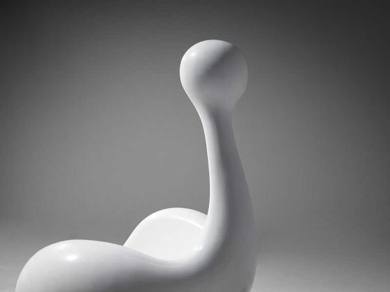 'Engelhart', meaning the heart of an angel in Dutch, is designed by the artist duo Adelheid and Huub Kortekaas for their home, or so to speak their conceptual artwork 'De Tempelhof' situated in Winssen, Holland. The concept of the first 'Angel' dates from 1967 and was created in the Doddendaal Castle. According to Huub & Aleid Kortekaas, angel means: 'The Angel in the field of tension between the masculine and the feminine, from the awareness that we are first and foremost human.'. This whimsical construction is executed in one piece of white moulded fiberglass. It features biomorphic shapes, a design element that fits within the universal visual language realized by the designer duo. Besides its aesthetic appeal, functionality comes into play as it allows the user to take different position in the wide seat. A truly magnificent and postmodern piece that will grab everyone's attention. This model is currently rare and hard to find. The chair can be admired in the exhibition "Everyday, Someday and Other Stories. Collection 1950-1980" organized by the Stedelijk Museum in Amsterdam.